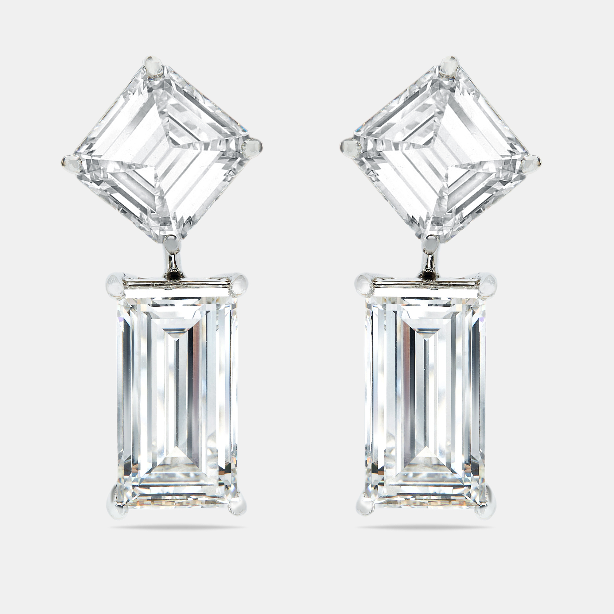 Bold in scale, architectural in spirit. These 24 carat earrings feature a striking merge of emerald and Asscher cut lab grown diamonds. Their brilliance is framed by sleek 18k white gold, making them less of an accessory and more of a statement.
