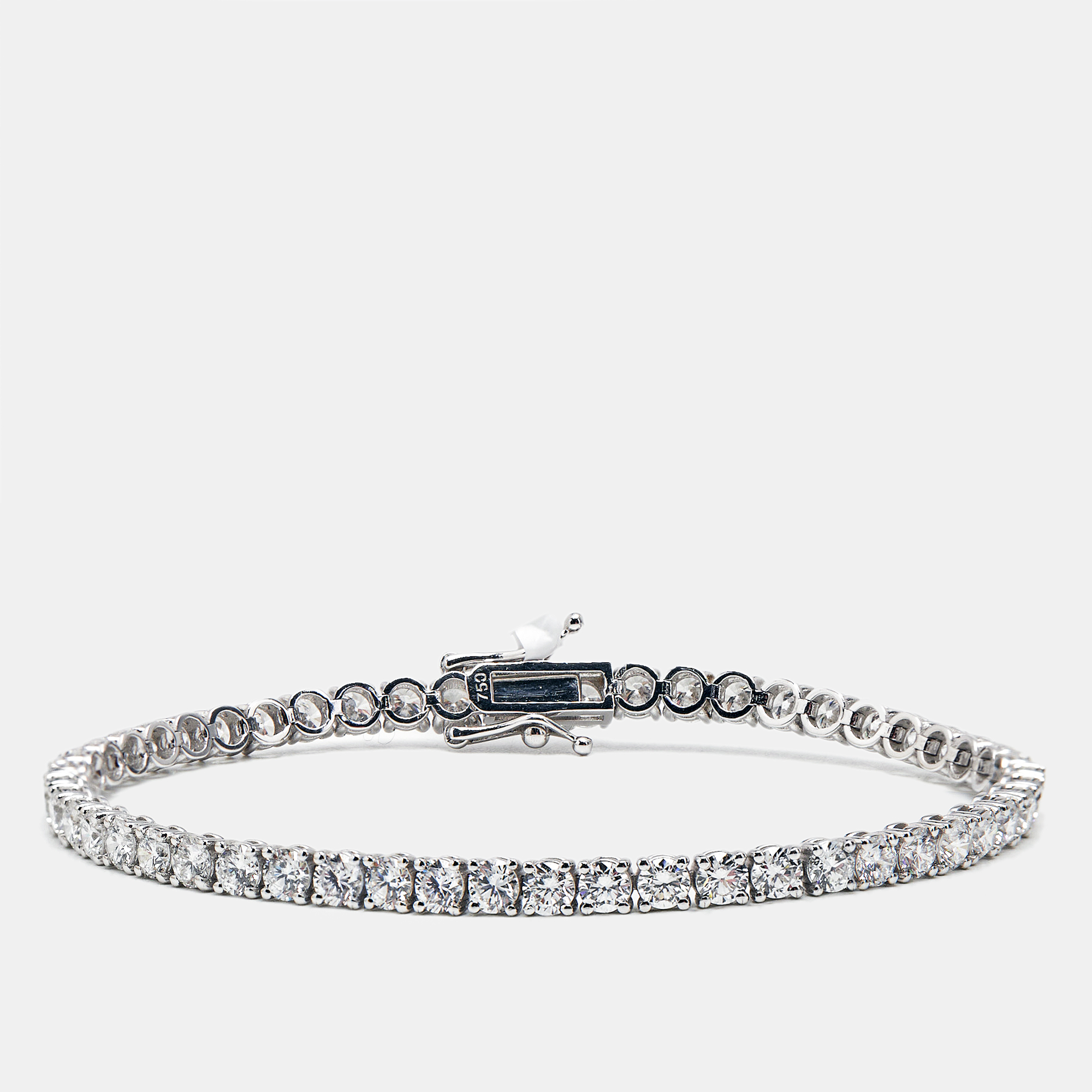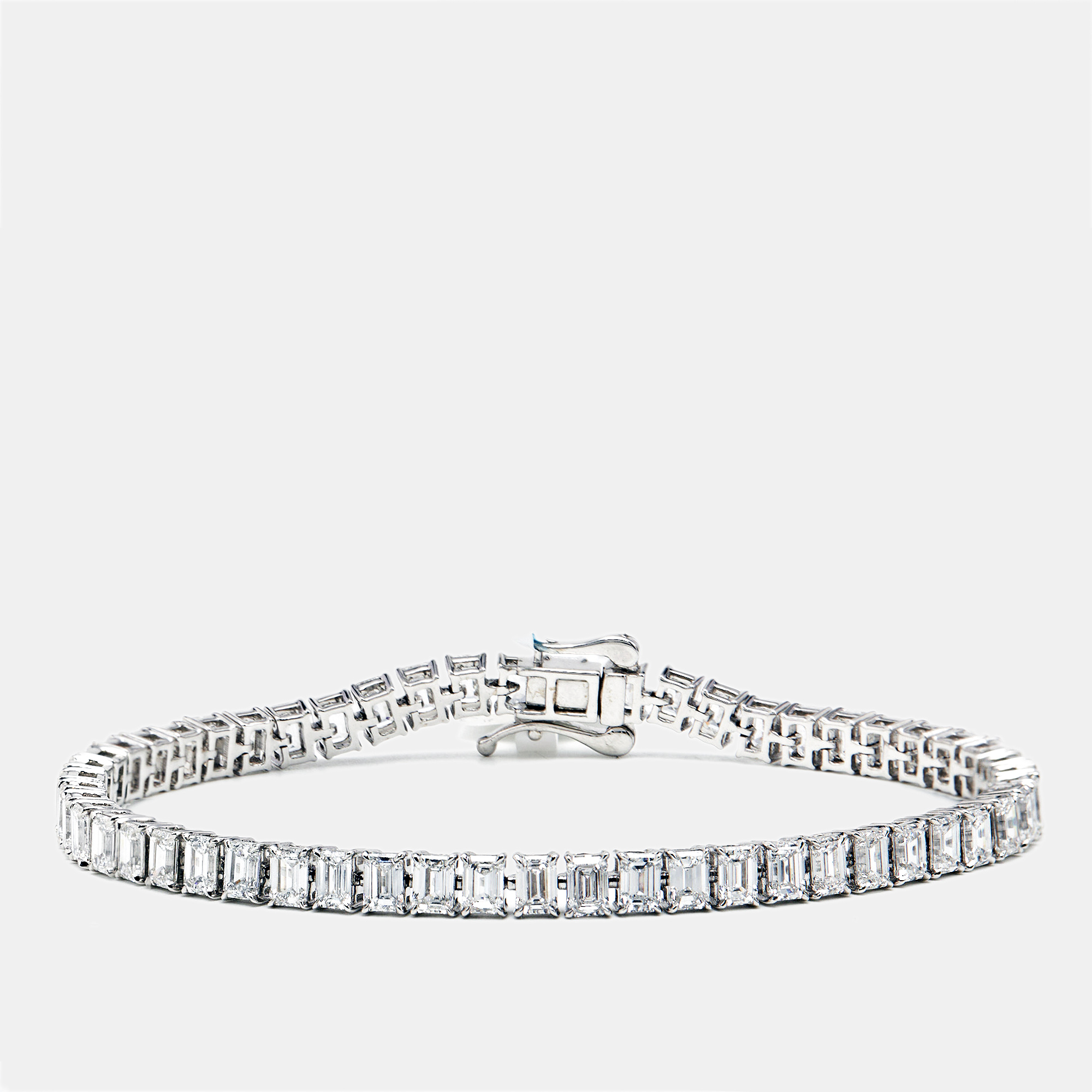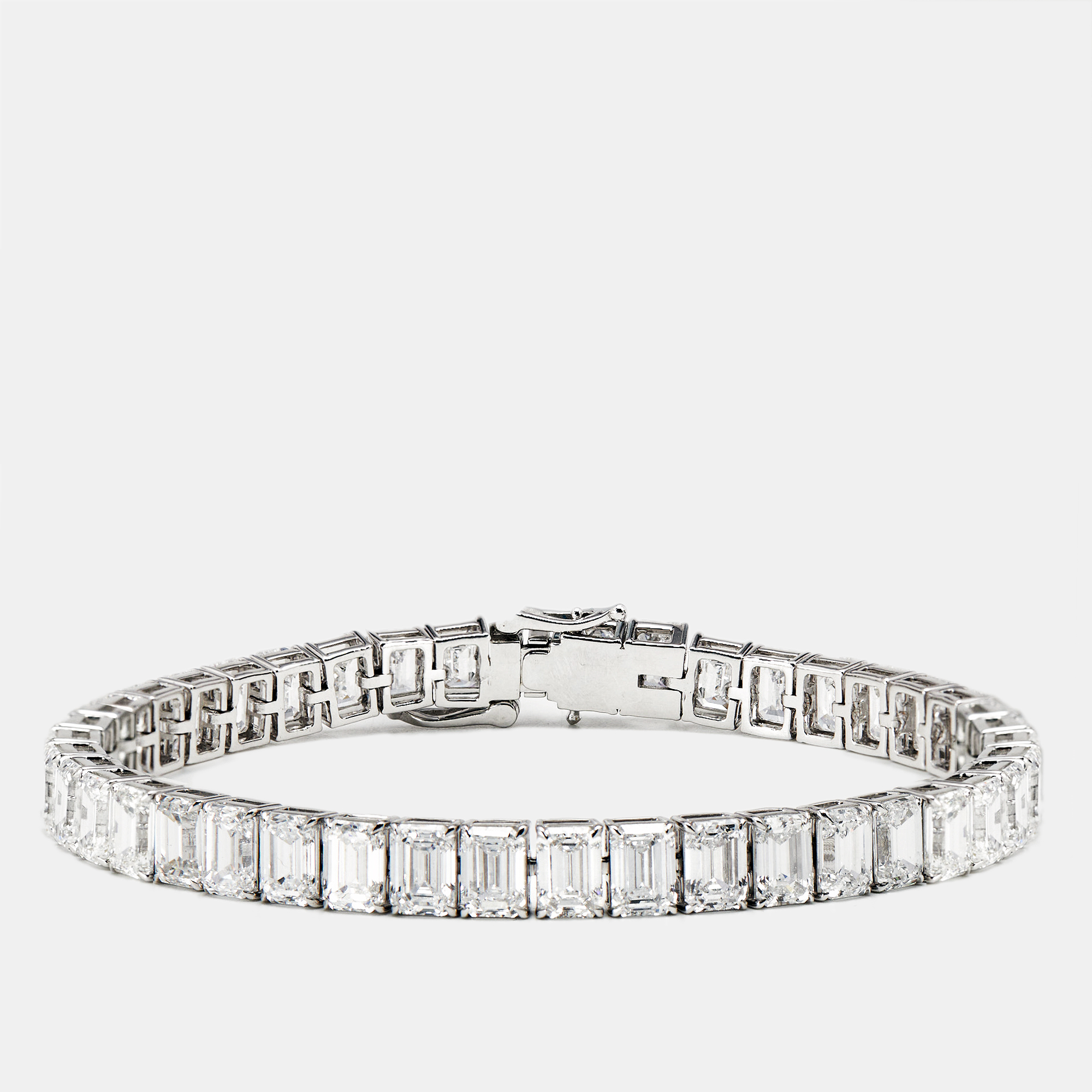 Sharp lines. Endless shine. With about 20.30 carats of emerald step cut lab grown diamonds, this bracelet speaks in angles and symmetry. Each stone is like a pane of glass—sleek, structured, and endlessly reflective—anchored in cool 18k white gold.