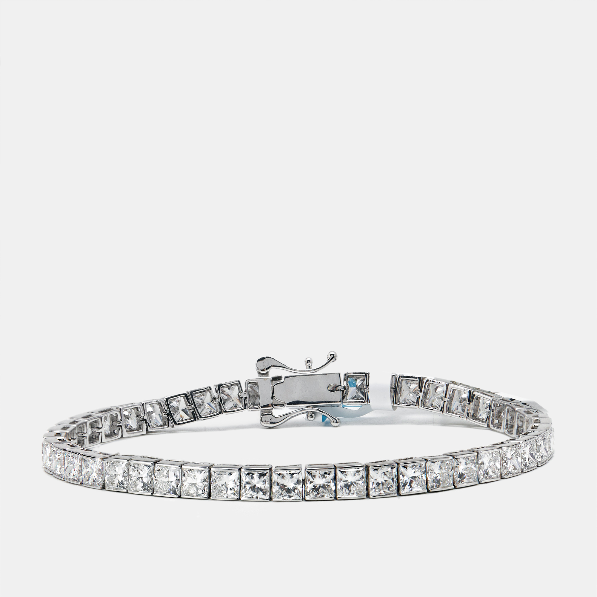 Chic. Structured. Unmistakably modern. This 14.28 carat tennis bracelet features princess cut lab grown diamonds arranged in a perfect grid of sparkle. Framed in 18k white gold, it’s a grand way to elevate your wrist game.