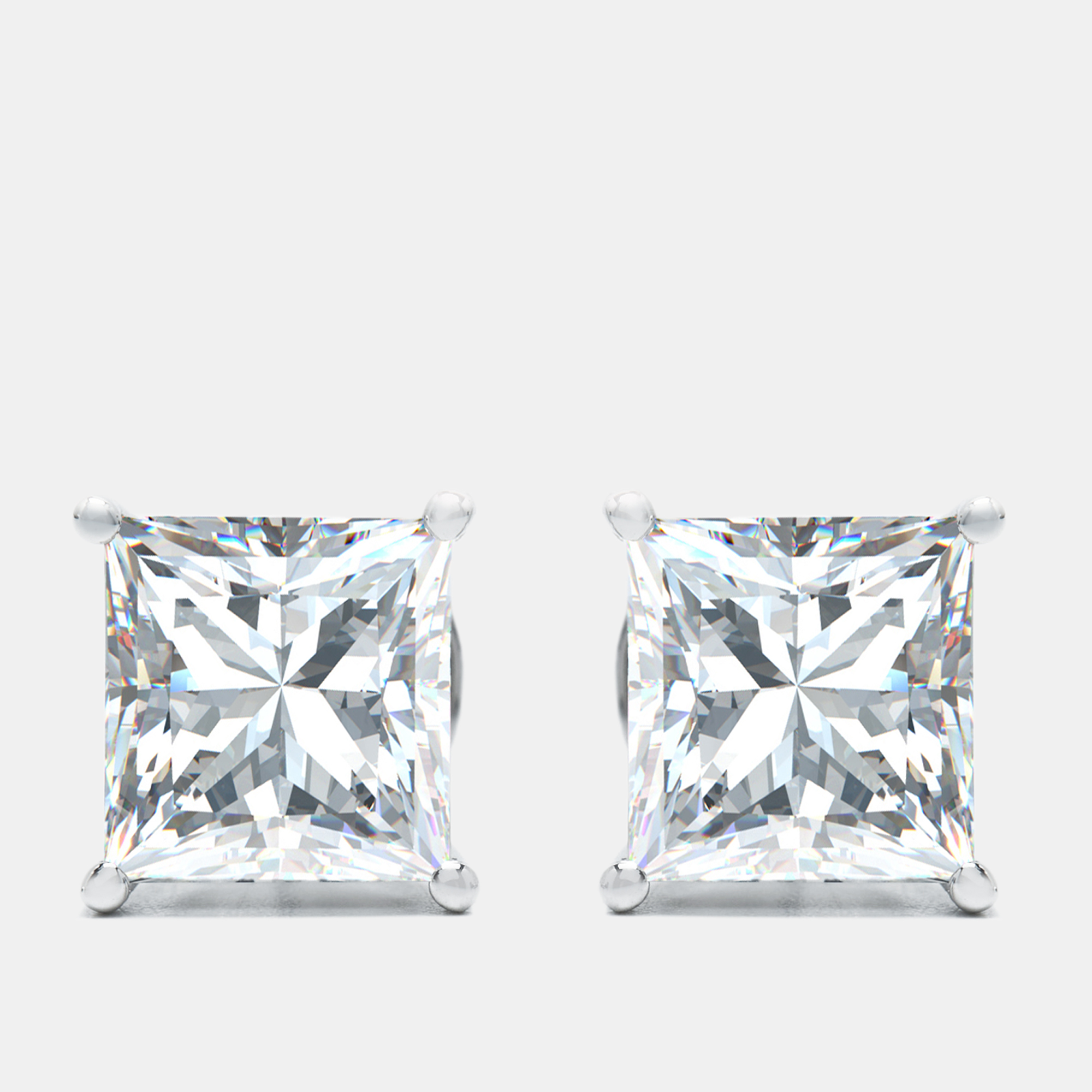 Modern geometry meets classic brilliance in these 6 carat lab grown diamond earrings. Each stone is set in gleaming 18k white gold to bring out a timeless sparkle.