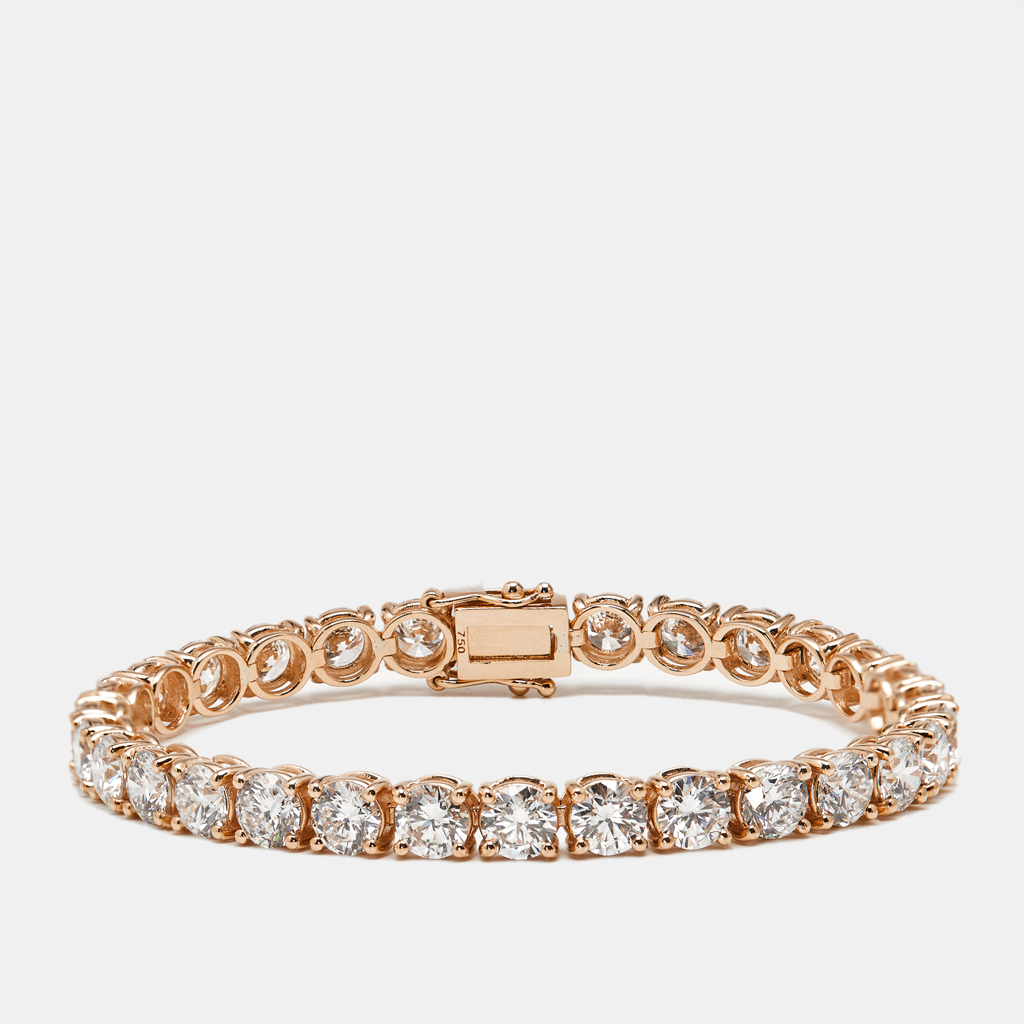 A love letter written in rose gold and light. This 14.50 cts tennis bracelet is a modern heirloom, where every lab grown round brilliant diamond dances with warmth and fire. The 18k rose gold setting deepens the romance, framing each stone in a blush toned embrace. Timeless in beauty, conscious in creation—this is jewelry that speaks to the heart and the future.