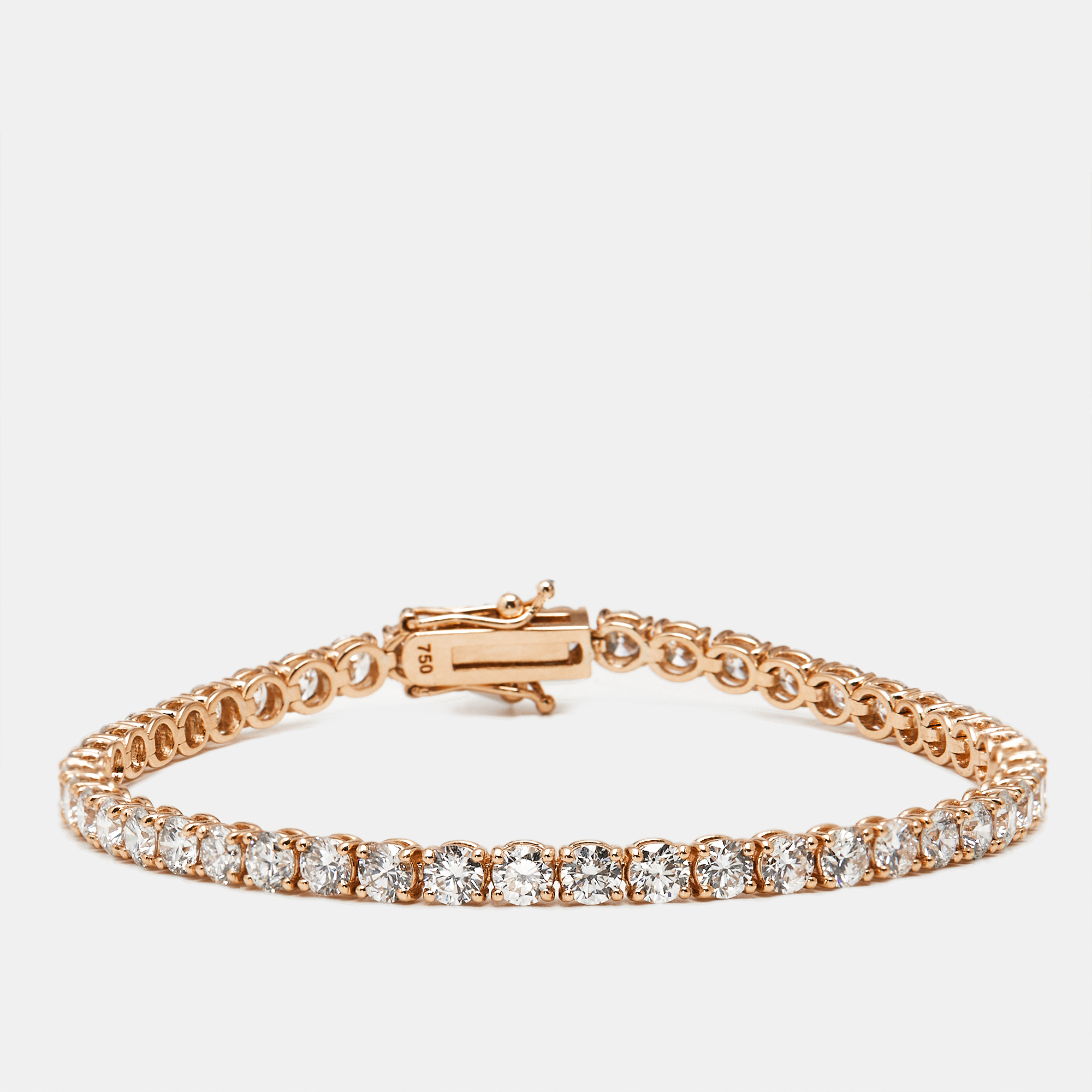 This 7.30 cts lab grown diamond bracelet pairs clean brilliance with the soft warmth of 18k rose gold. Whether layered or worn solo, it offers striking sparkle with a hint of romance.