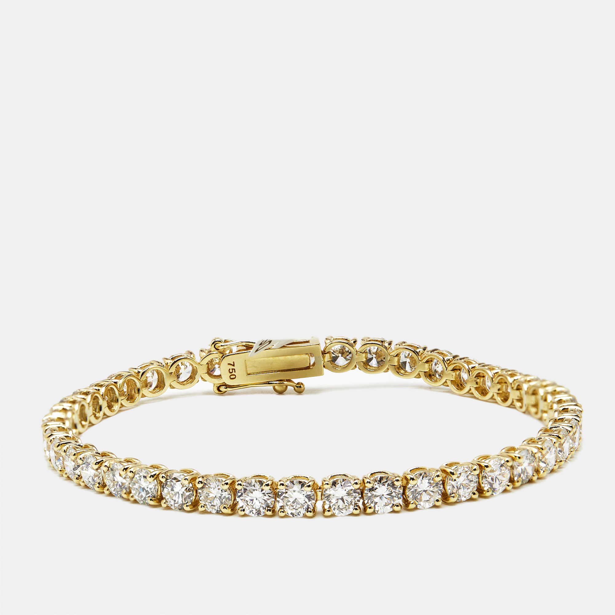 This 11.00 cts lab grown diamond tennis bracelet is crafted for maximum brilliance in 18k yellow gold. Each round brilliant stone is meticulously cut and perfectly matched, creating a river of fire that wraps the wrist with undeniable presence. Luxurious, ethical, unforgettable.