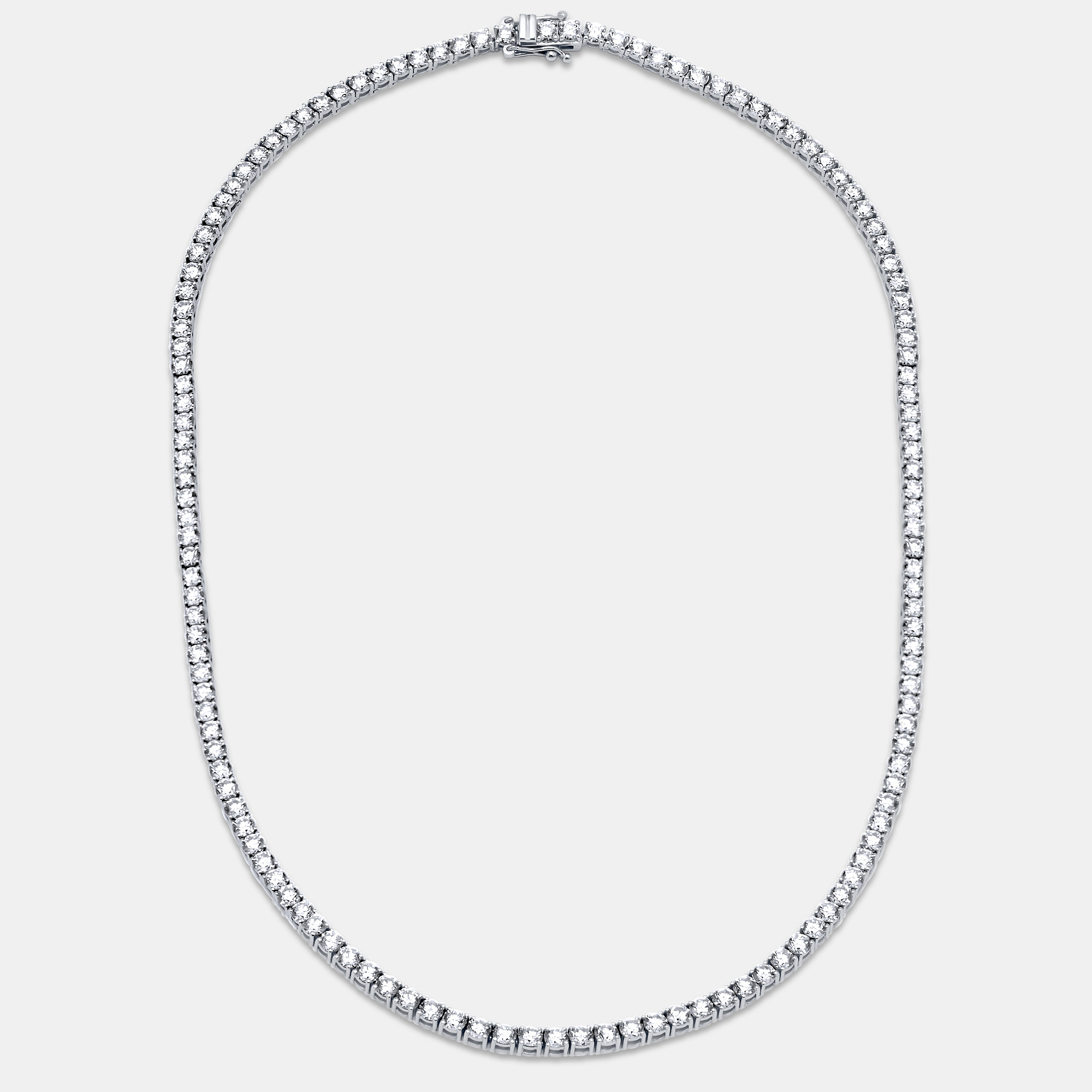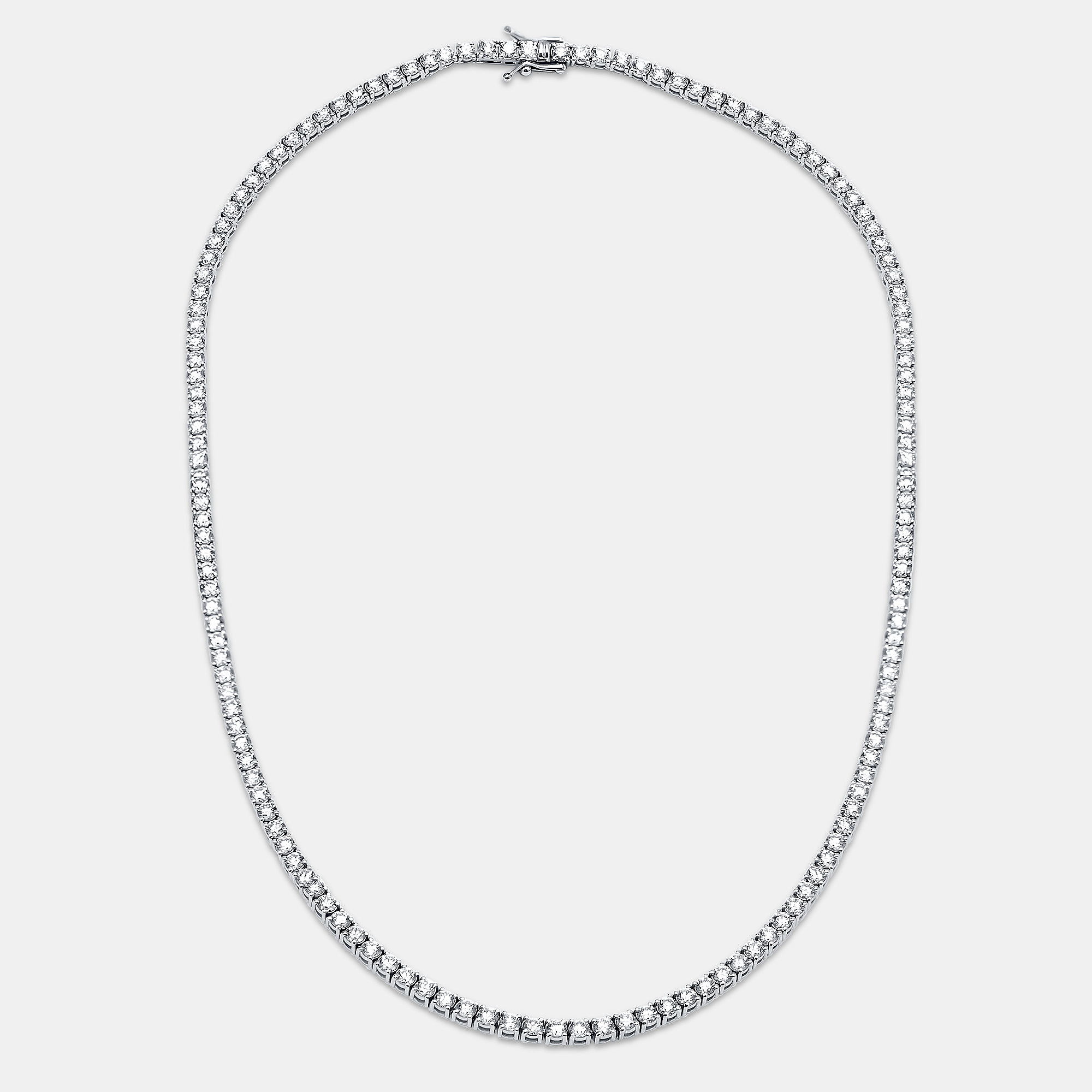A soft shimmer that sits just at the collarbone, catching the light with every breath. This 10 carat diamond necklace is strung with round stones in perfect rhythm, each one set in cool 18k white gold. Simple, luminous, and meant to be worn without a second thought.