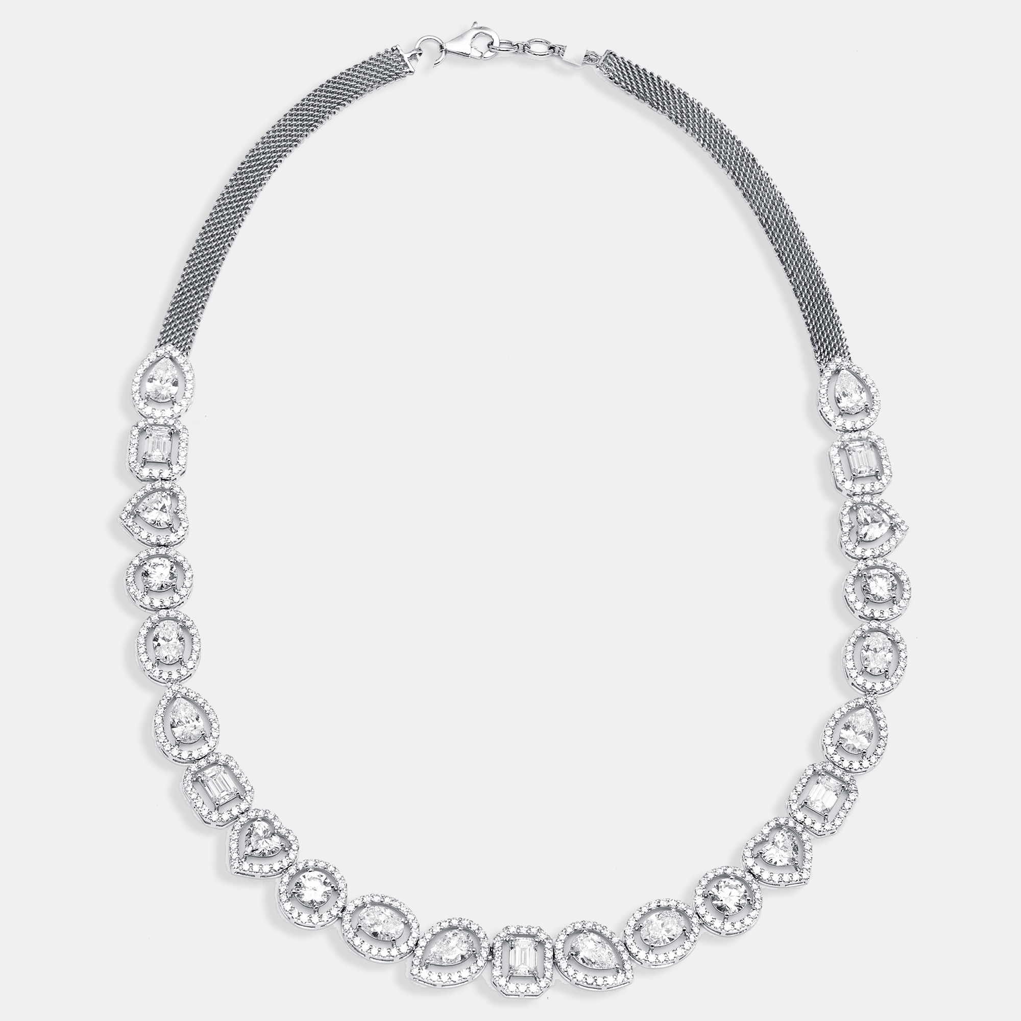 A choreography of cuts, each catching light in its own way yet dancing together in harmony. With 16 carats of brilliance strung across white gold, this necklace feels like a mosaic of starlight, shifting with every movement, never the same twice.