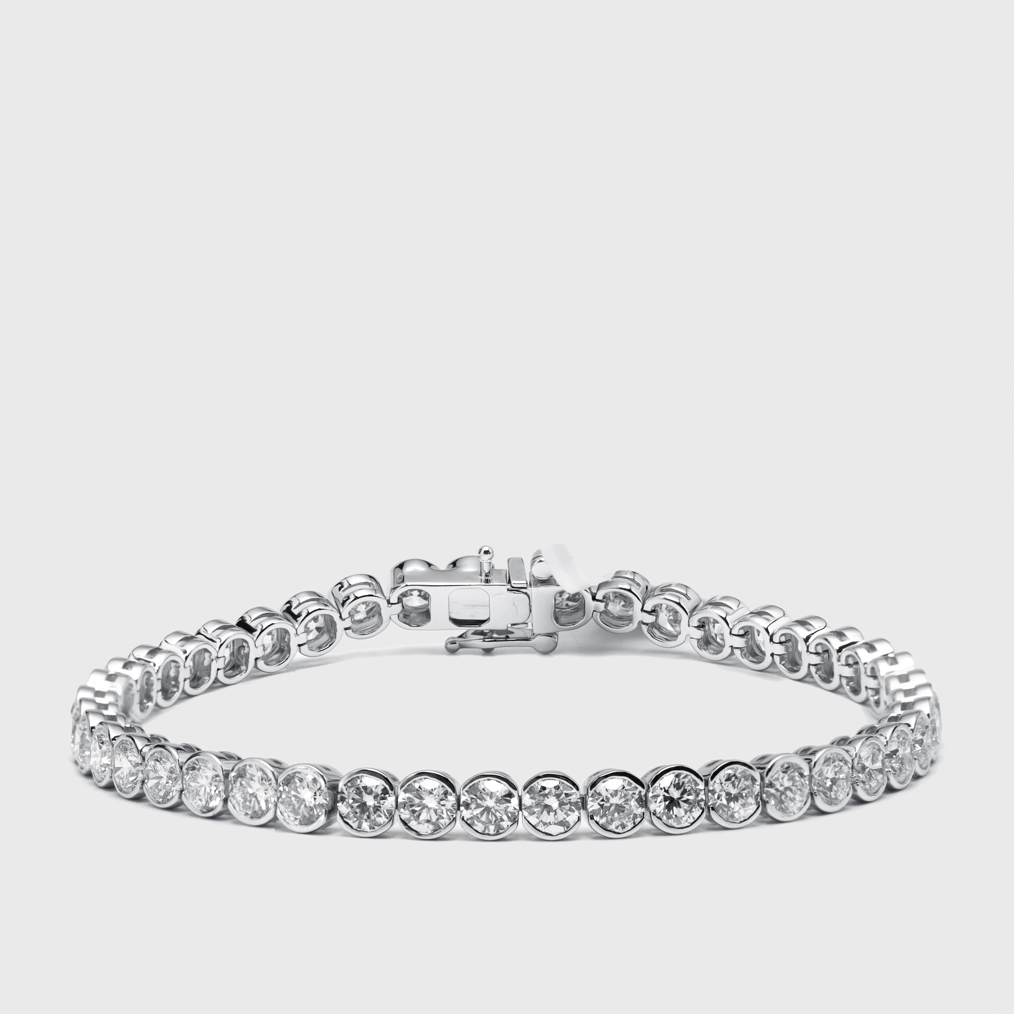 A river of light in its purest form. Round lab grown diamonds, totaling 10.5 carats, flow in unbroken rhythm across a setting of white gold. Each stone glimmers like a drop of moonlight, creating a bracelet that feels both luminous and eternal.