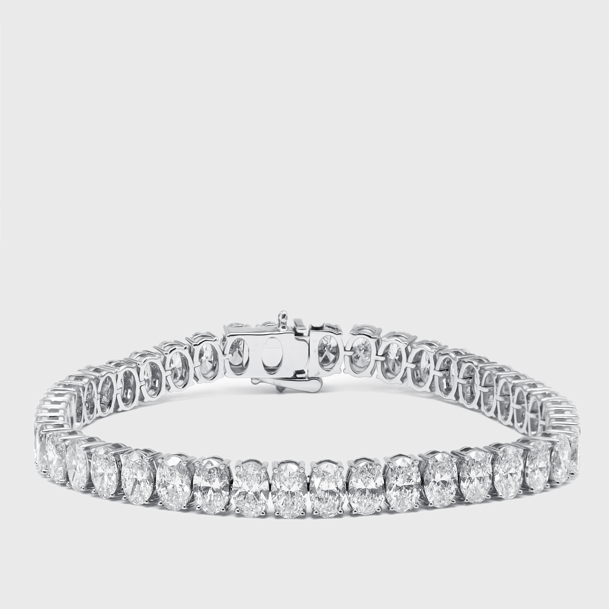 A bold sweep of oval diamonds, 18 carats in all, set in white gold. Each elongated stone reflects the light with sculptural clarity, forming a bracelet that feels both fluid and commanding. It is the kind of brilliance that lingers in memory.