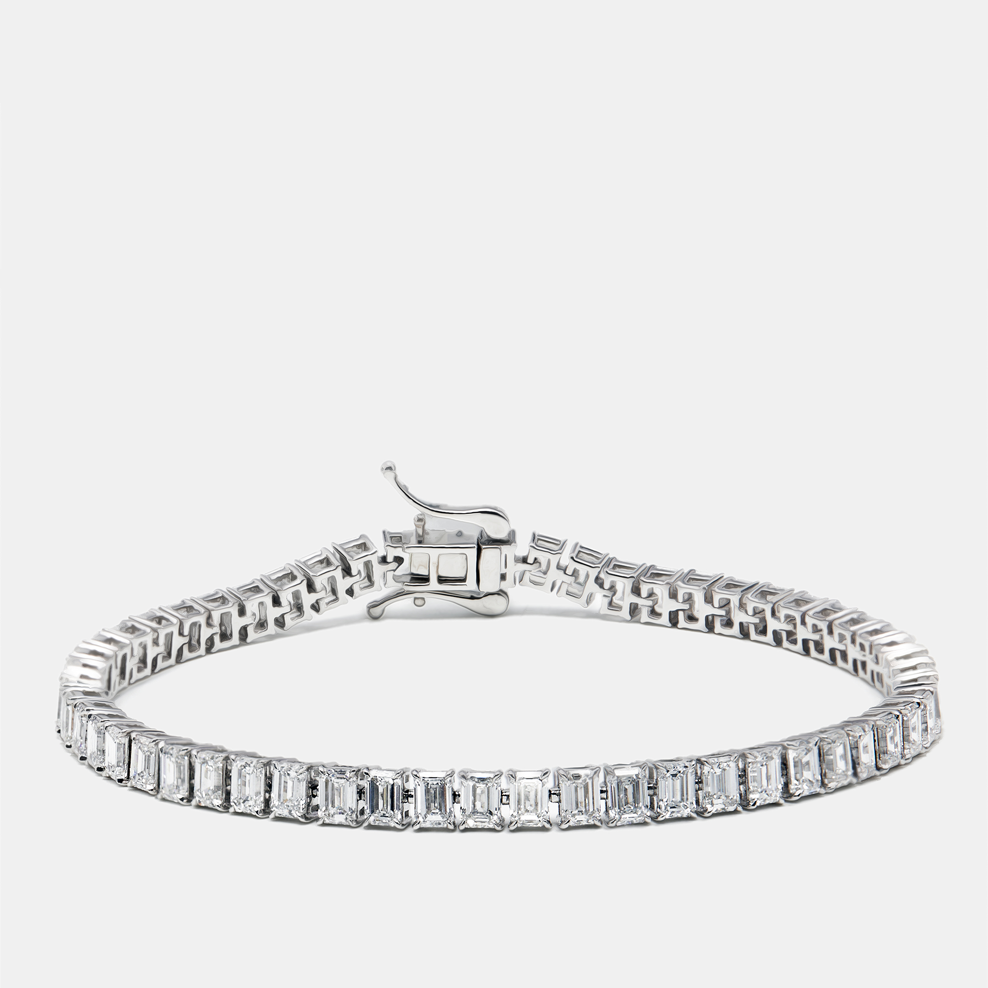 The clarity of emerald cut lab grown diamonds gives this 18k white gold bracelet its calm power. Each facet reflects with precision, like morning light through tall windows. It feels easy to wear with an evening dress or with a simple jeans and tee OOTD.