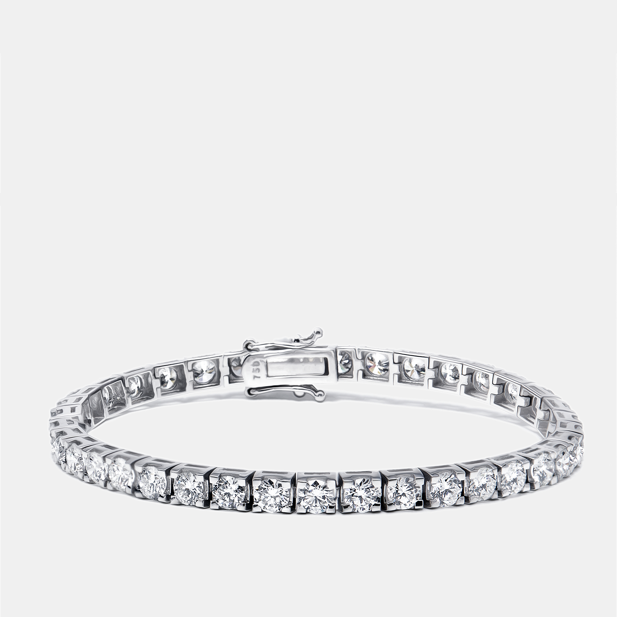 A classic line of round diamonds shimmers in perfect symmetry, each stone reflecting light with easy grace. Set in 18k white gold, the tennis bracelet moves fluidly with the wrist and remains timeless in form.