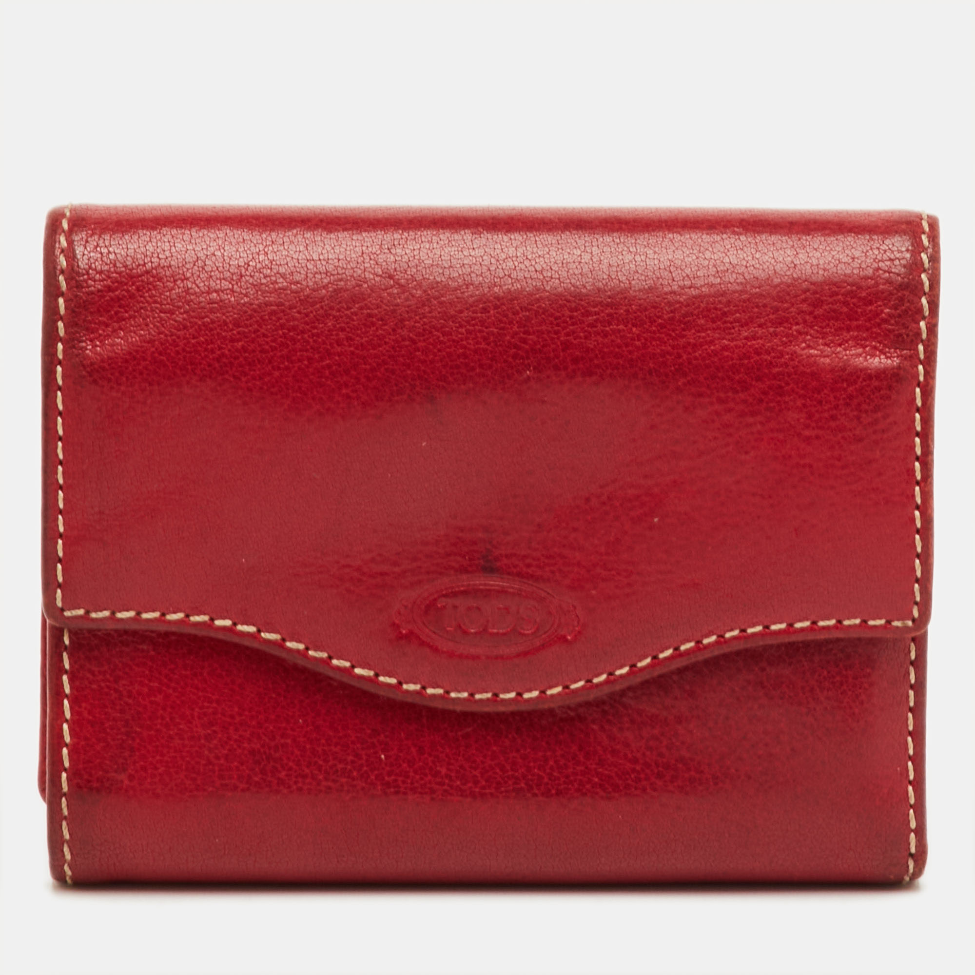 The dark red leather gives this Tod’s compact wallet a grounded, everyday look. The curved flap and contrast stitching add a bit of character. Inside, it has the right amount of space for cards and small essentials, making it a straightforward choice for daily use.