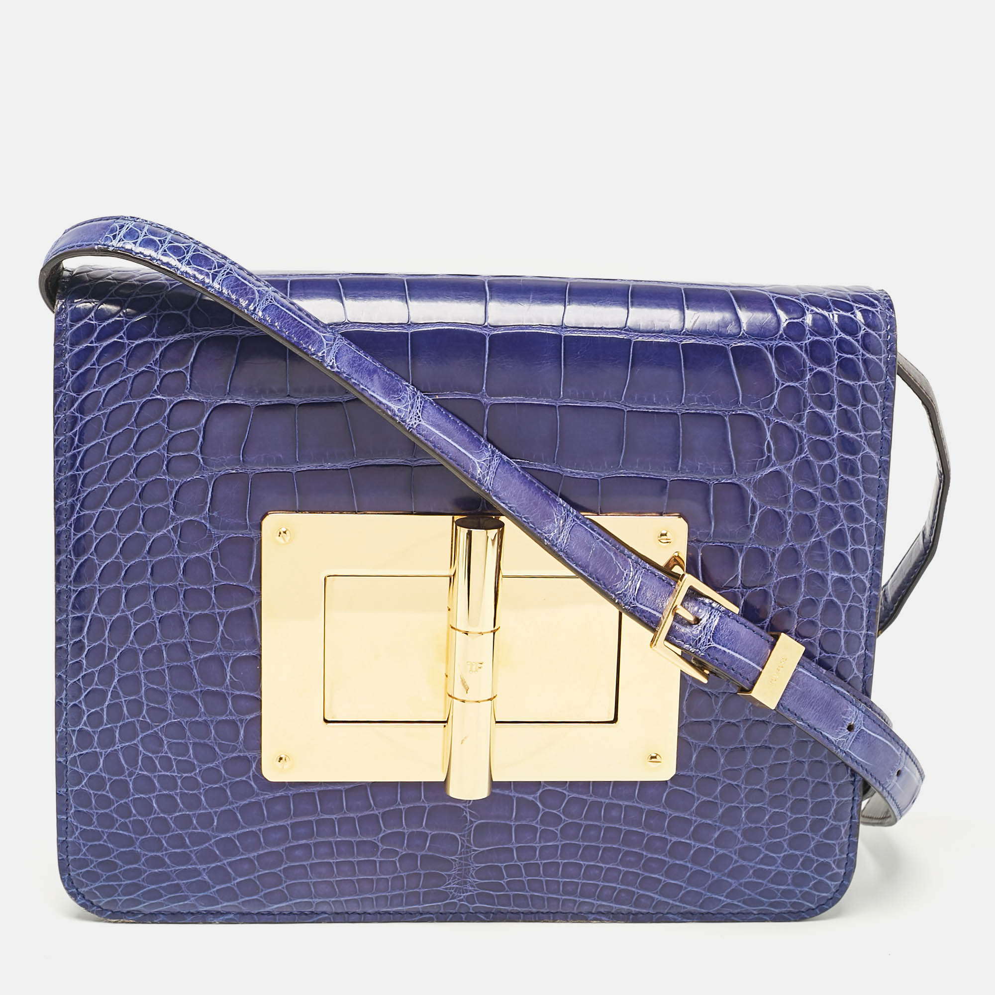 This Natalia bag from Tom Ford is here to end all your fashion woes, as it is striking in appeal and utterly high on style. It has been crafted from extoic materials and designed with a flap that has a large turn lock carrying the signature TF engravings. The Alcantara insides are spacious and the bag is complete with a shoulder strap. This ultra modern bag will lend you just the right amount of class and make you stand out like a true fashionista