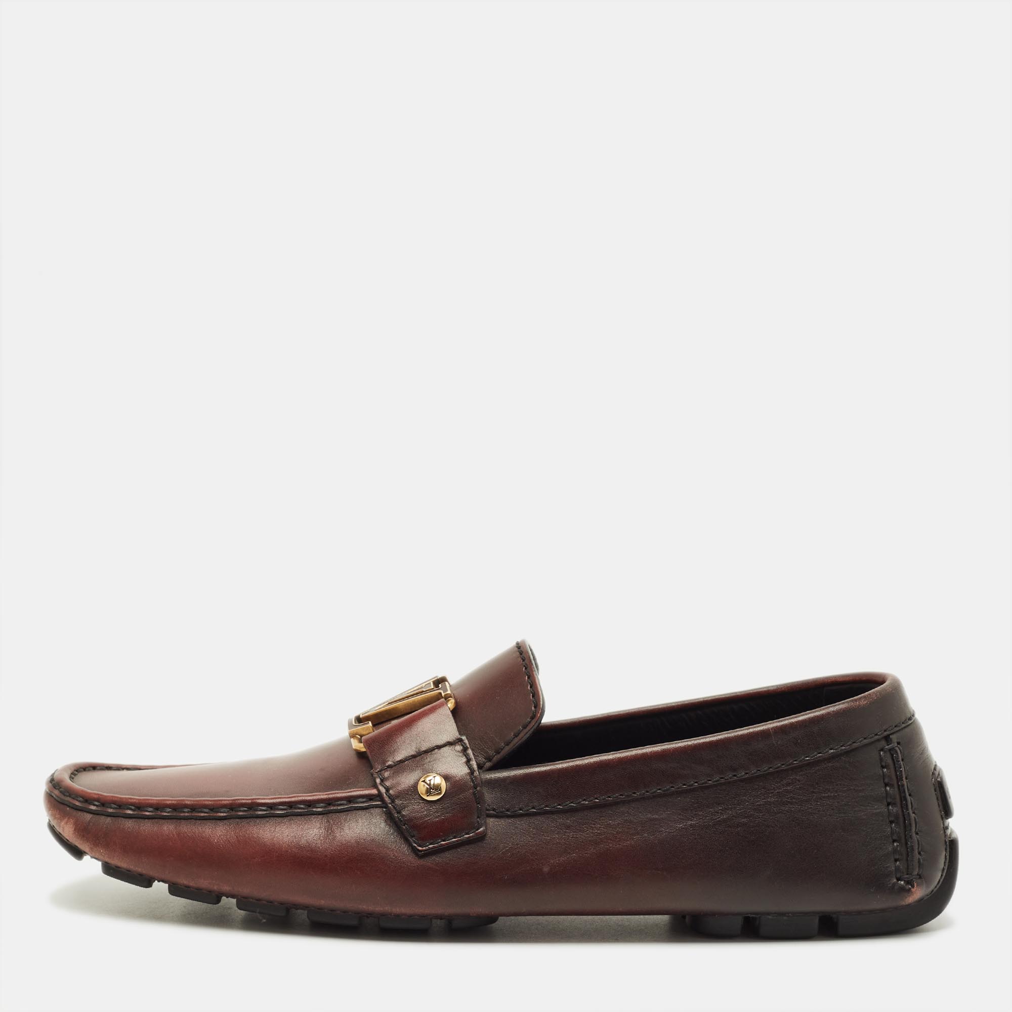 A polished option for daily wear, the Louis Vuitton Monte Carlo loafers come in dark burgundy leather with a classic shape. The slip on style makes them convenient, while the low profile works well with tailored or casual looks.