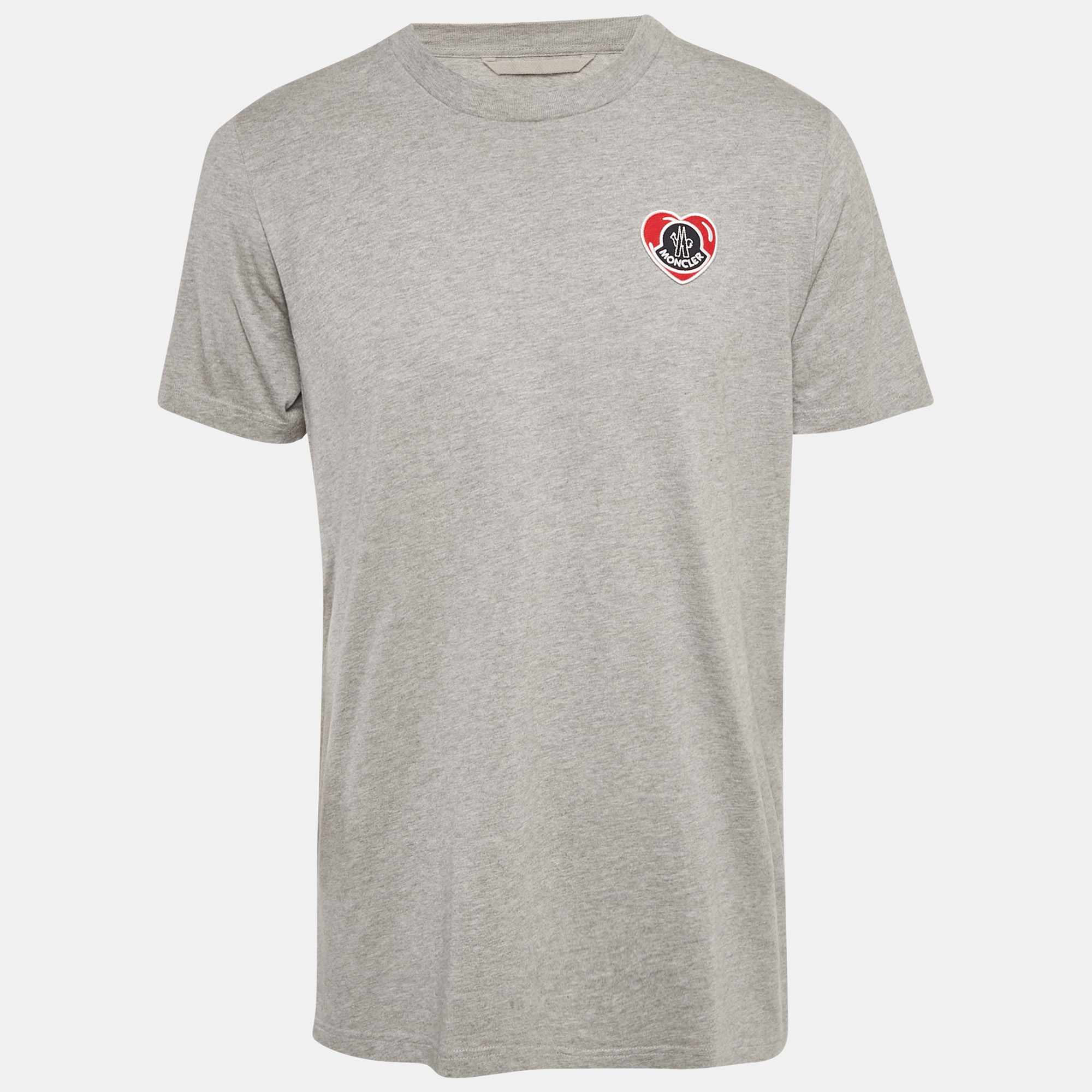 This Moncler T shirt is crafted from soft grey jersey and accented with the brand’s signature logo appliqué on the front. Designed for comfort and durability, it offers a clean, contemporary silhouette. A versatile everyday piece perfect for casual and travel wear.