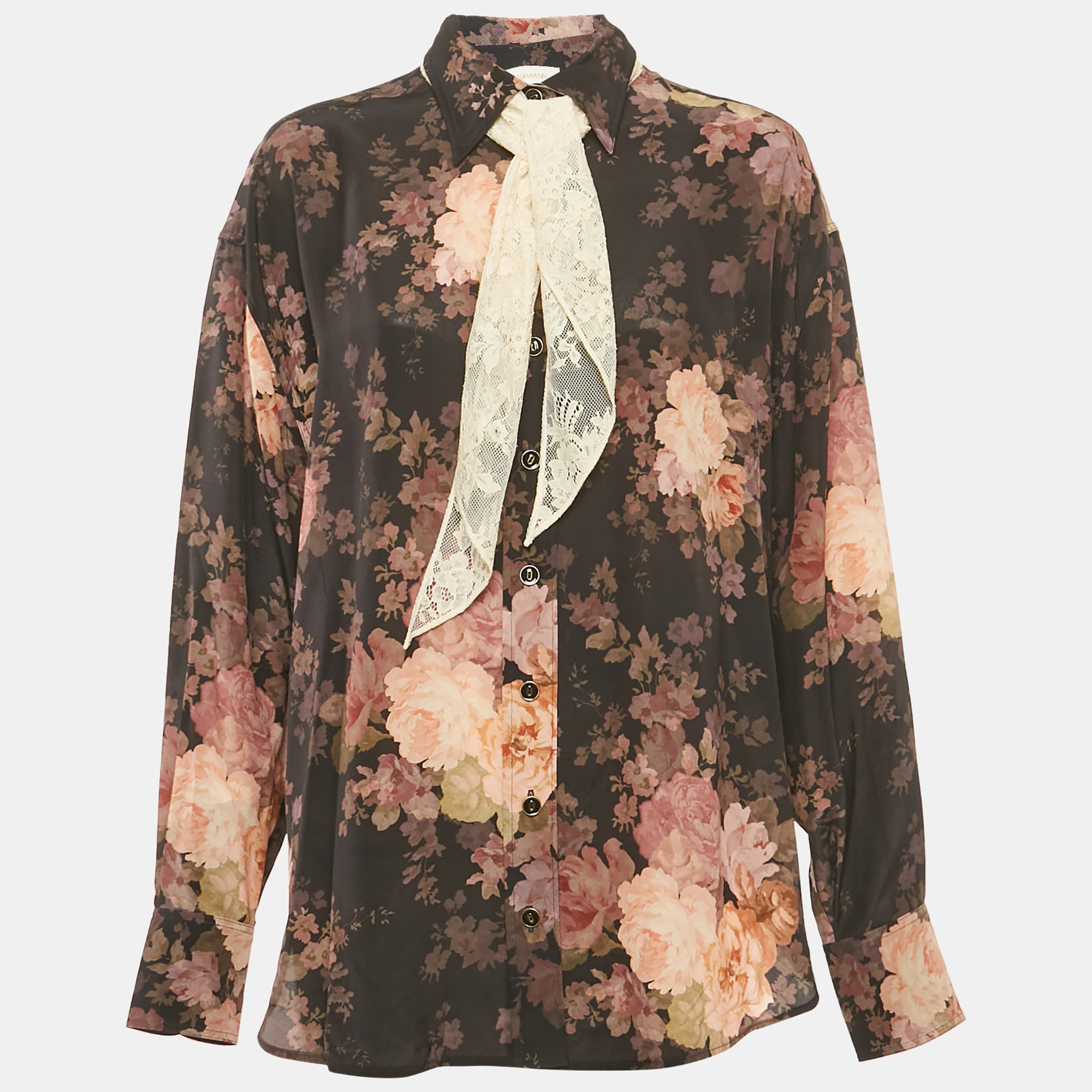 Elegance meets romantic detail in this floral silk blouse by Zimmermann. Designed with a neck tie and button front closure, it’s the perfect mix of structure and softness for day to night versatility.