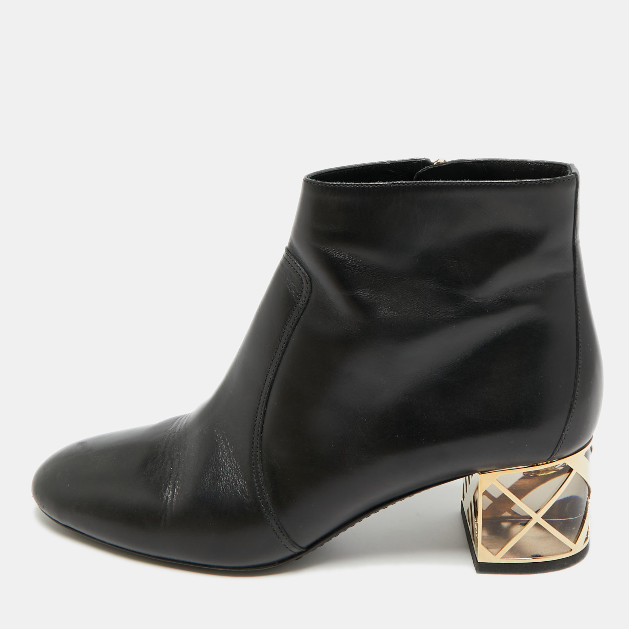 These Burberry Billesdon boots are crafted in black leather with a clean ankle length cut. The block heel and classic shape make them dependable for regular wear across seasons.