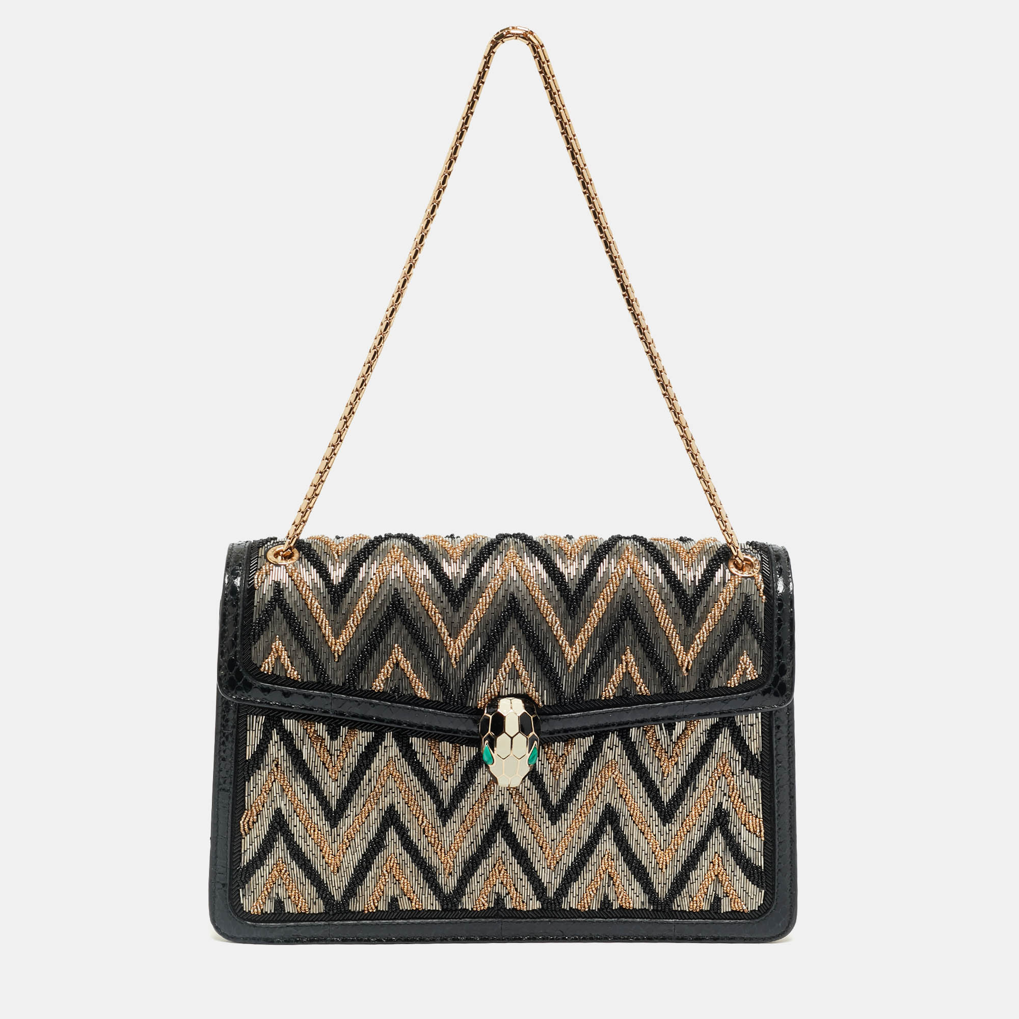 This Serpenti Forever bag balances craftsmanship and drama through chevron beading and ayers leather. The serpent clasp anchors the design, while the texture does the rest. Best suited to evenings, formal gatherings, or occasions where detail deserves attention.