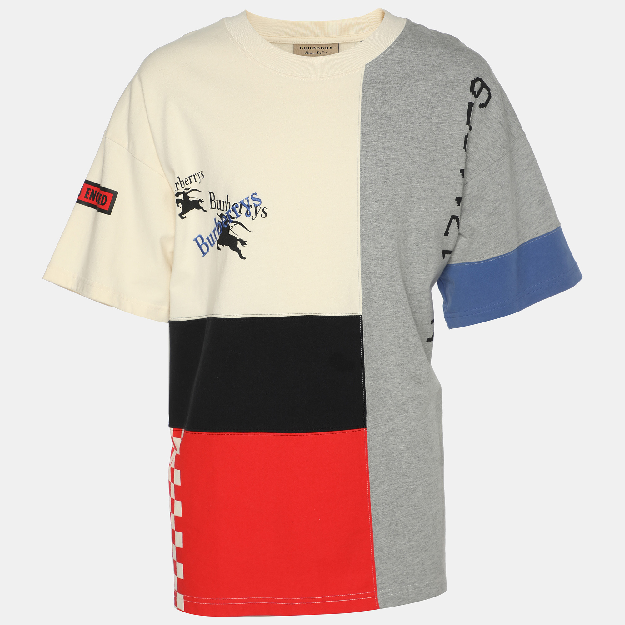 Embrace casual elegance with this Burberry colorblock crew neck, thoughtfully crafted entirely from premium cotton for a comfortable, breathable feel. This multicolored masterpiece effortlessly combines vibrant hues, offering a modern twist on classic style. Tailored for the fashion forward man, it embodies the British brands iconic craftsmanship and attention to detail. Whether paired with jeans or chinos, this essential piece promises to enhance your wardrobe with its luxurious appeal and timeless versatility.