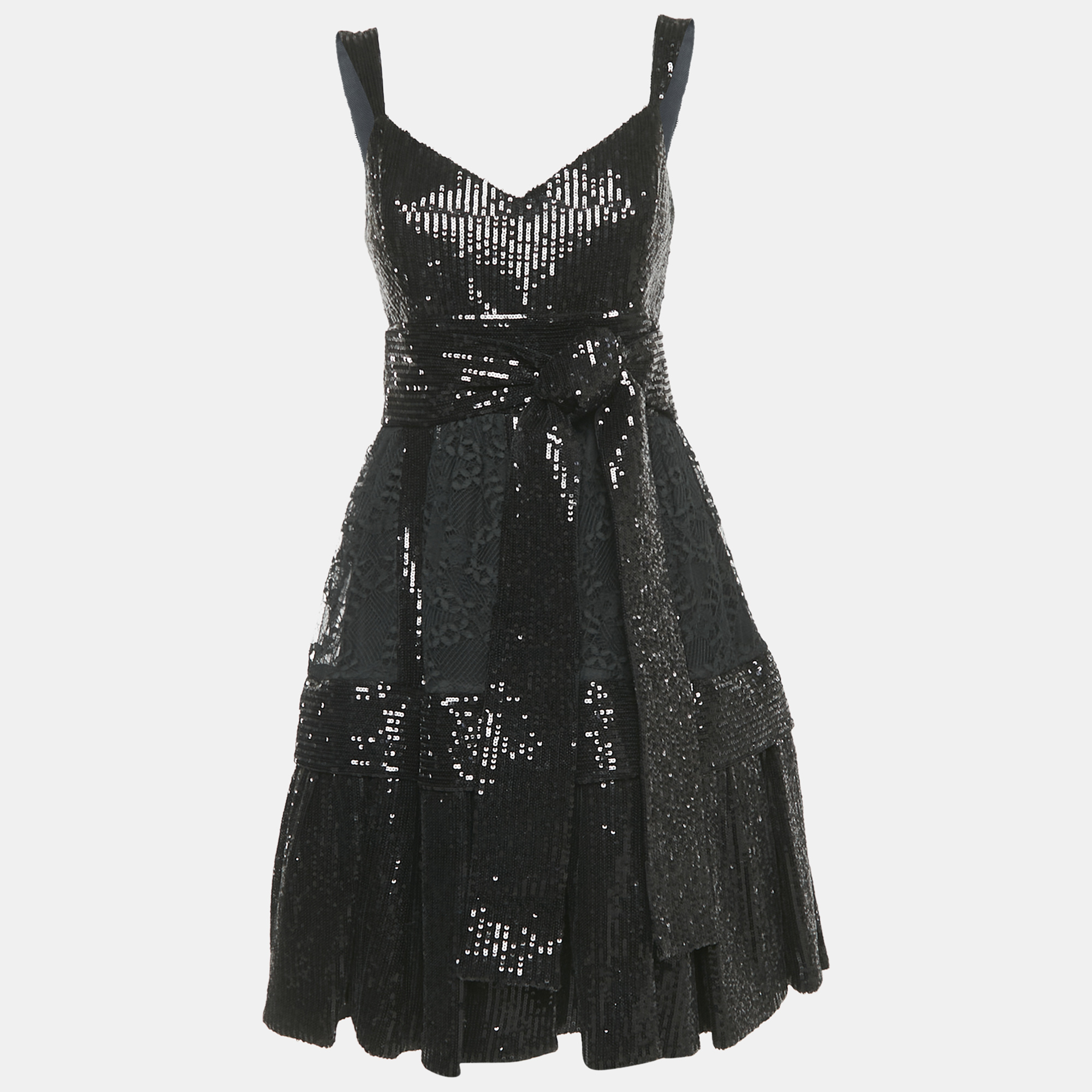 The black tulle on this Elisabetta Franchi mini dress has a soft, floaty look, with beads that give it a gentle sparkle. The sheer sleeves keep it light, and the embellishment adds just enough detail to make it feel special for a night out.