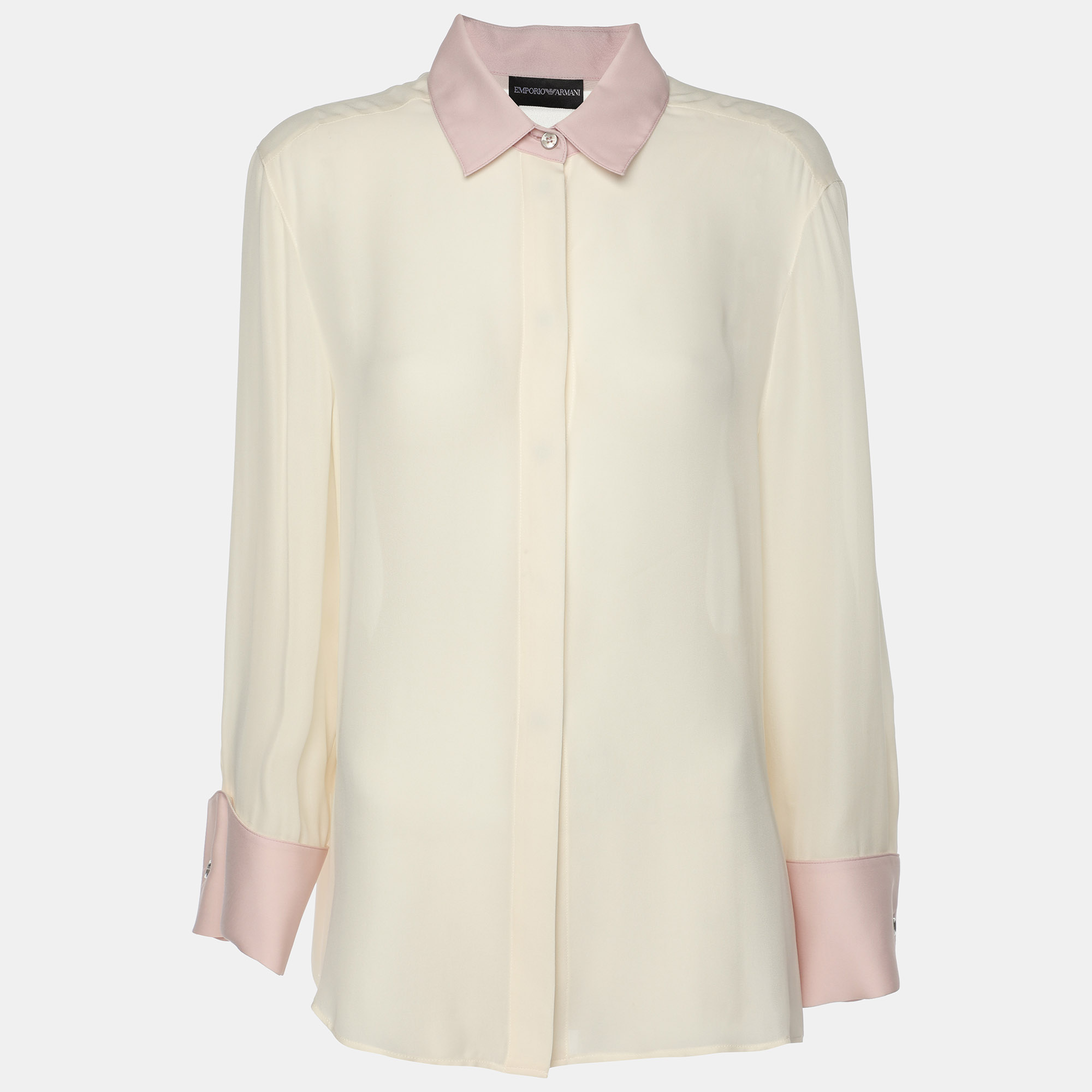 This Emporio Armani top is crafted in black silk and finished with bow detailing that adds softness and contrast. Designed for elegant styling, it pairs well with tailored trousers or skirts. A refined top that brings subtle femininity to evening or formal looks.