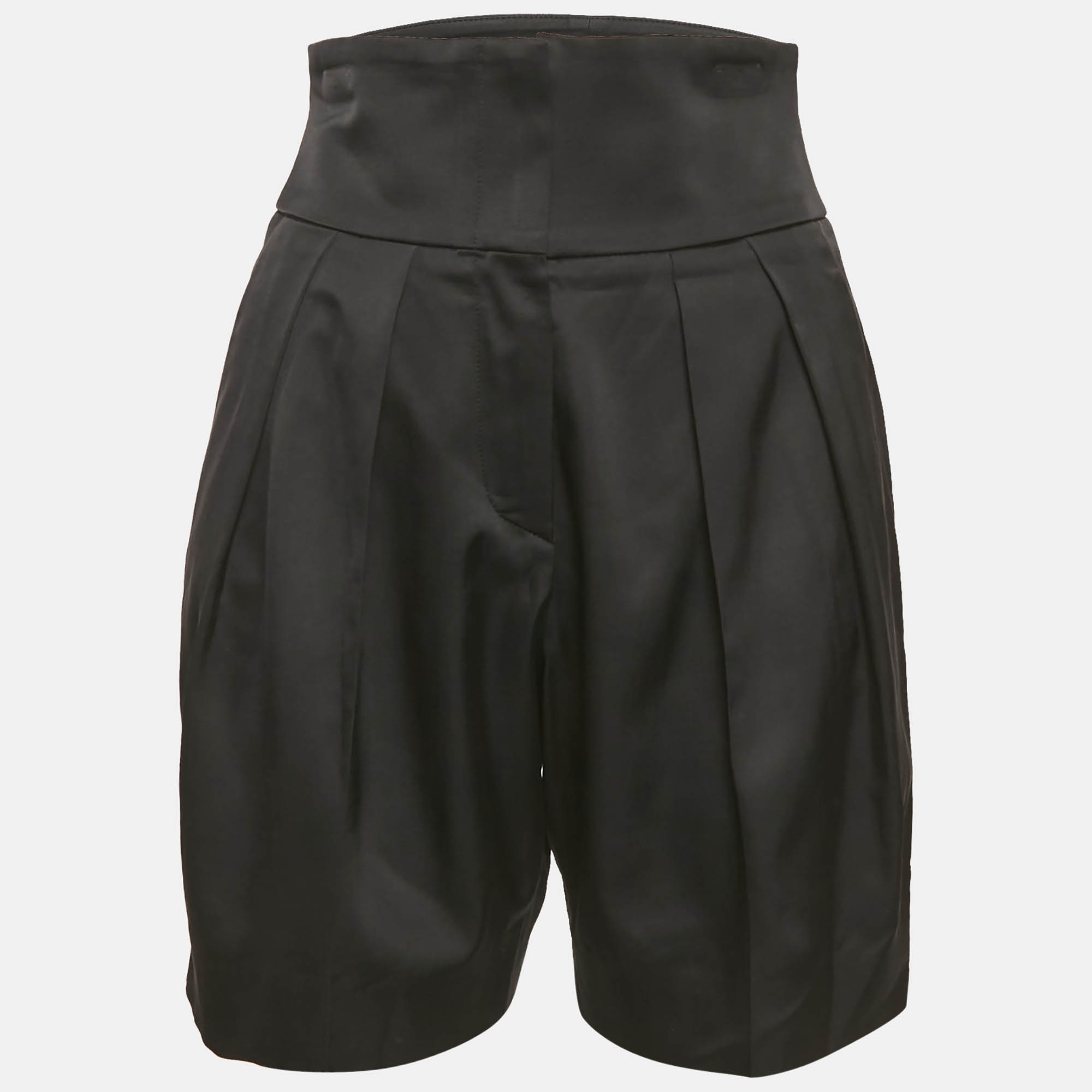 These Emporio Armani shorts are finished in black silk with defined front pleats and a high waistband. The shape is relaxed through the leg, keeping the look sharp and understated for casual wear.