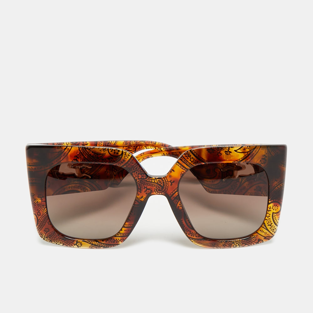 These Etro oversized sunglasses feature a Havana print frame with brown gradient lenses. Designed for statement styling, they offer coverage and visual depth. A bold eyewear choice that reflects Etro’s expressive approach to pattern and color.