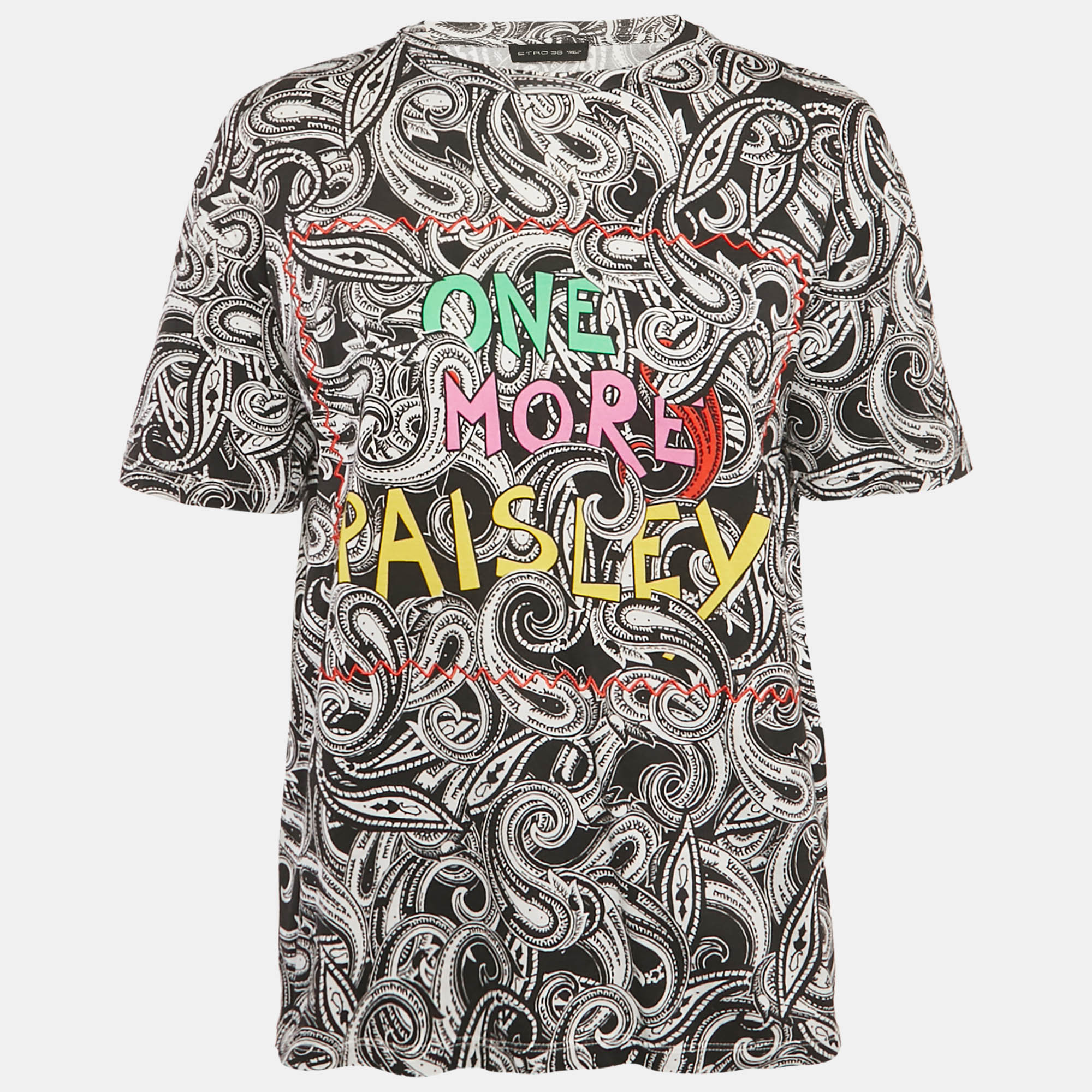 The swirling black and white paisley gives this Etro tee a lively, graphic look, and the bright lettering across the front adds a fun contrast. The cotton feels relaxed and lightweight, making it simple to throw on with jeans or shorts.
