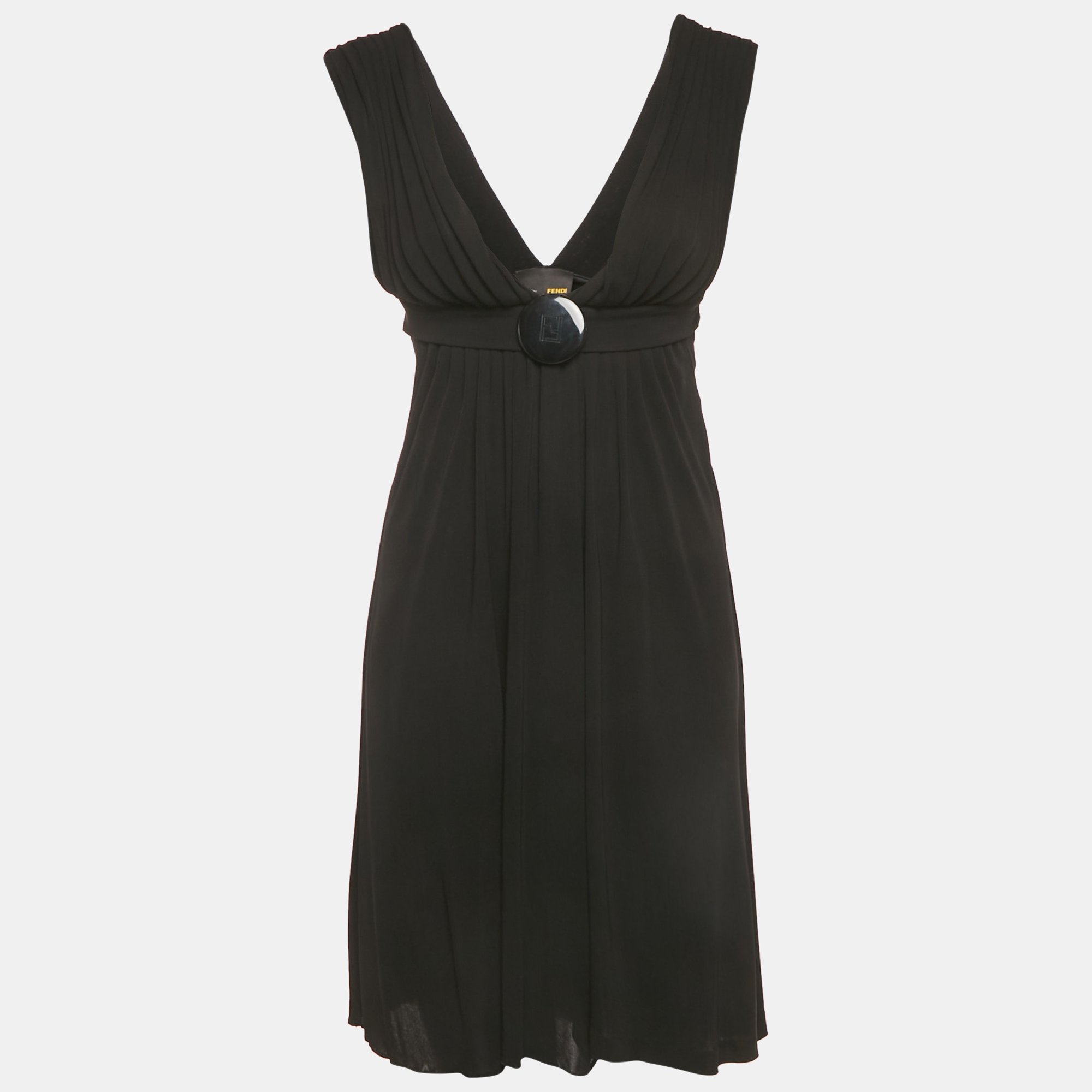 This Fendi dress is cut from navy silk and cinched with a matching belt. The minimalist design allows the luxurious fabric to speak for itself.