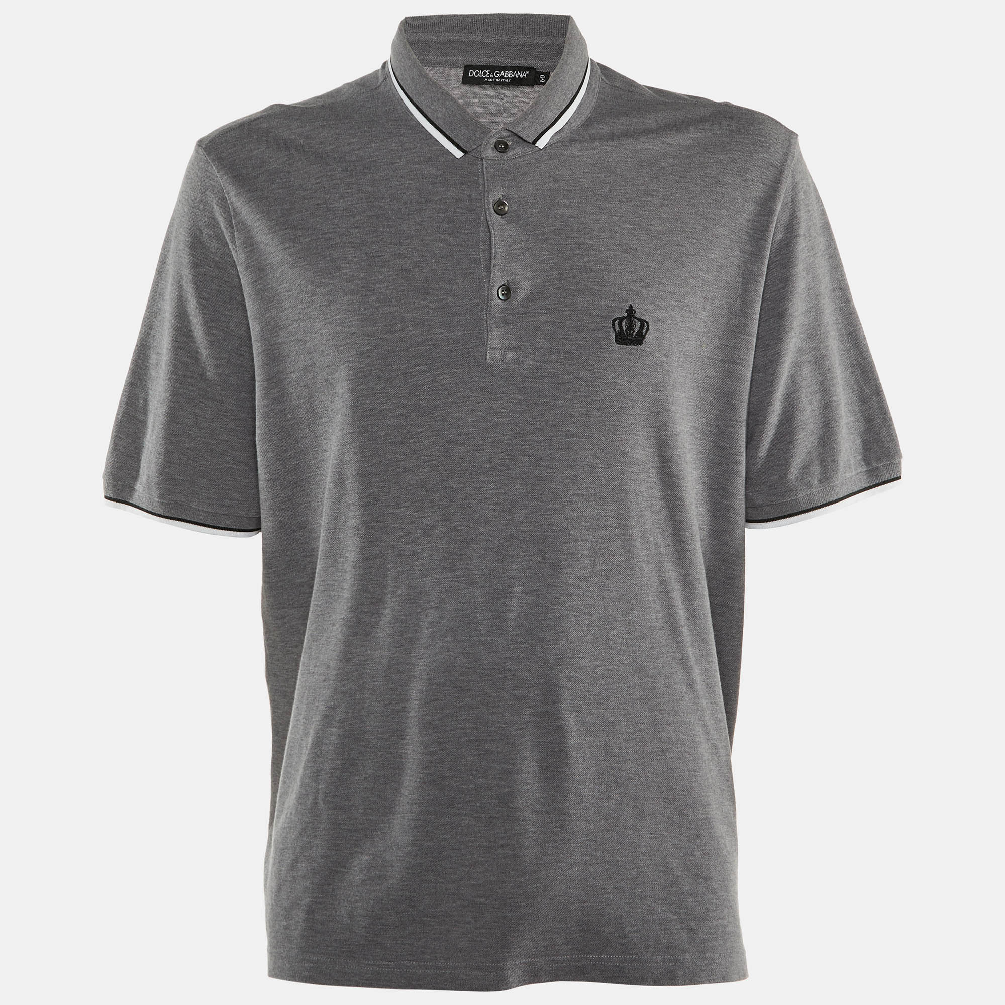 This Dolce and Gabbana grey polo t shirt brings together comfort and iconic style in a relaxed 5XL fit. Made from breathable cotton, it’s finished with a subtle logo detail—ideal for elevated casualwear with a designer touch.