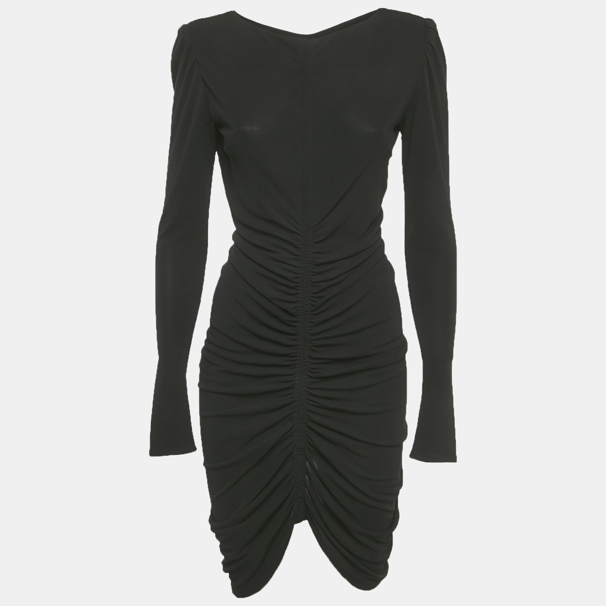 Sleek and contemporary, this Givenchy mini dress is crafted from black stretch crepe with flattering ruched detailing. The body skimming silhouette enhances the figure while offering comfort and ease of movement. A refined yet bold piece ideal for evening events or statement styling.