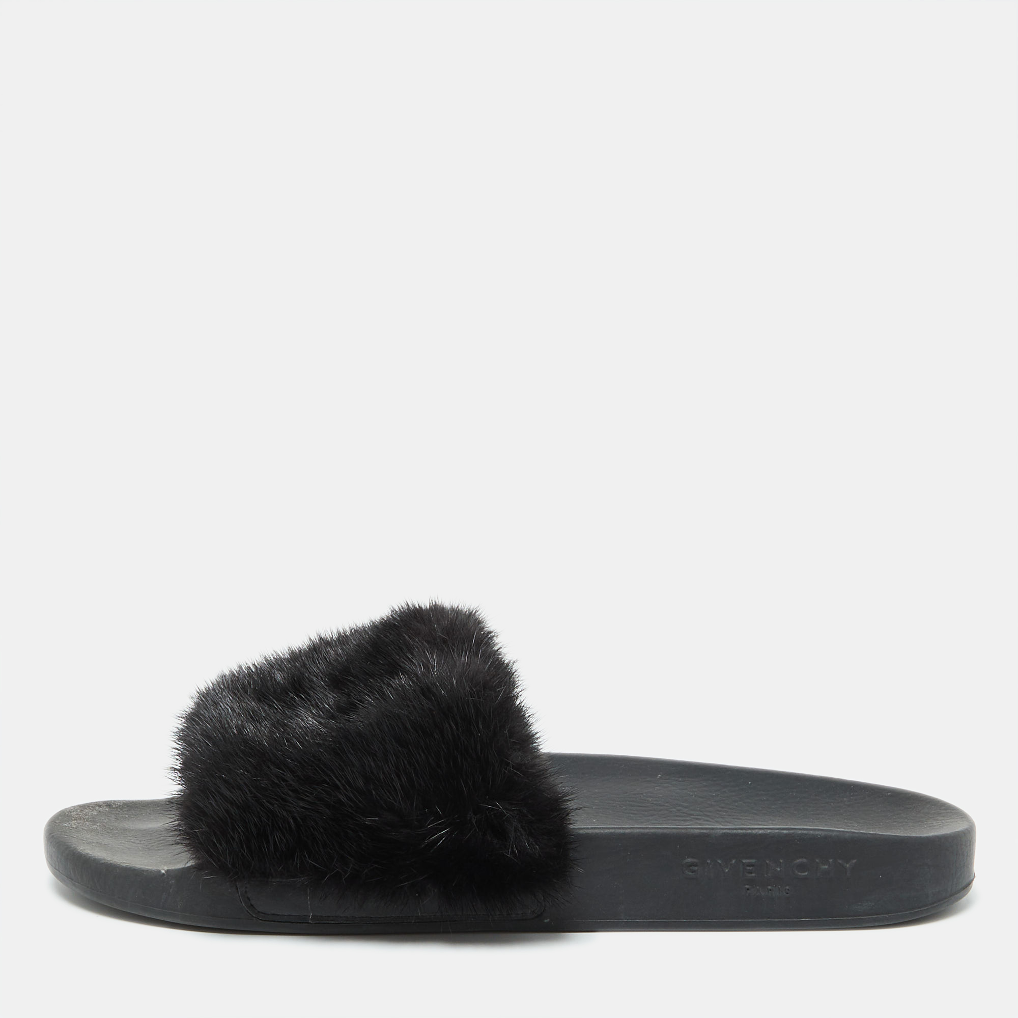 These slides from Givenchy are trendy and easy to slip on. Crafted in a black shade, they feature a thick front strap adorned with mink fur along with outsoles designed to provide comfort at every step. This is one pair that speaks high fashion in a nonchalant way.
