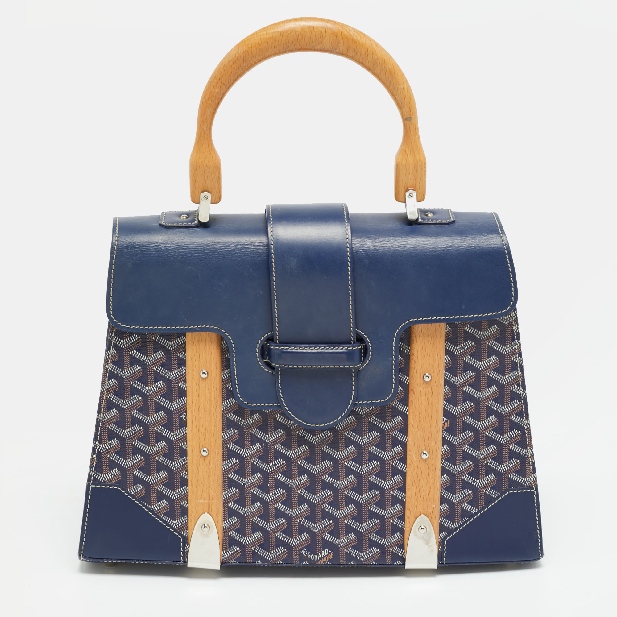 Navy Goyardine sets the mood here, paired with smooth leather panels and the Saigon’s signature wooden handle and front slats. The shape feels instantly recognizable and ready for all your plans. Inside, there is room for all your essentials, and the top handle gives it a handheld feel. A reigning classic from Goyard to invest in.