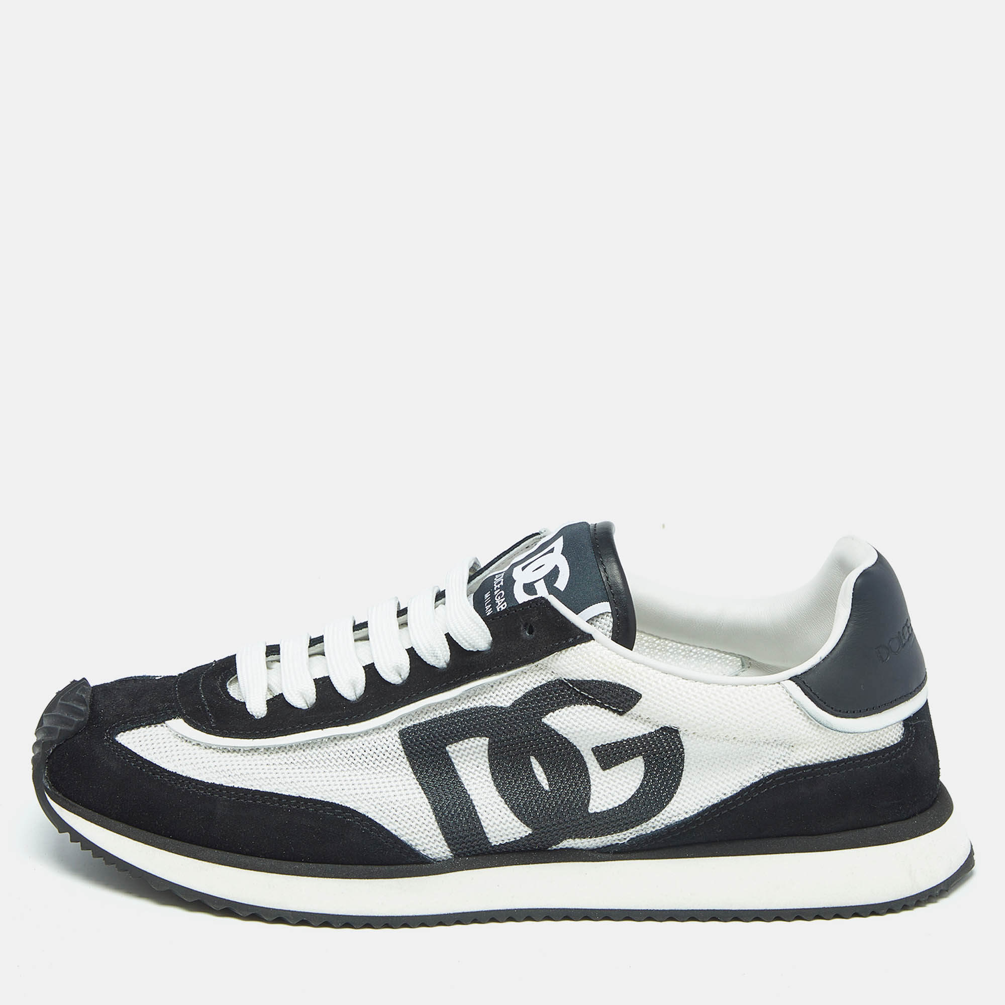 Dolce and Gabbana’s signature contrast comes through in these low top sneakers, blending black suede with white mesh and oversized DG branding. Athletic at the base, but styled with intent, they bridge sport and fashion with bold, decisive character.