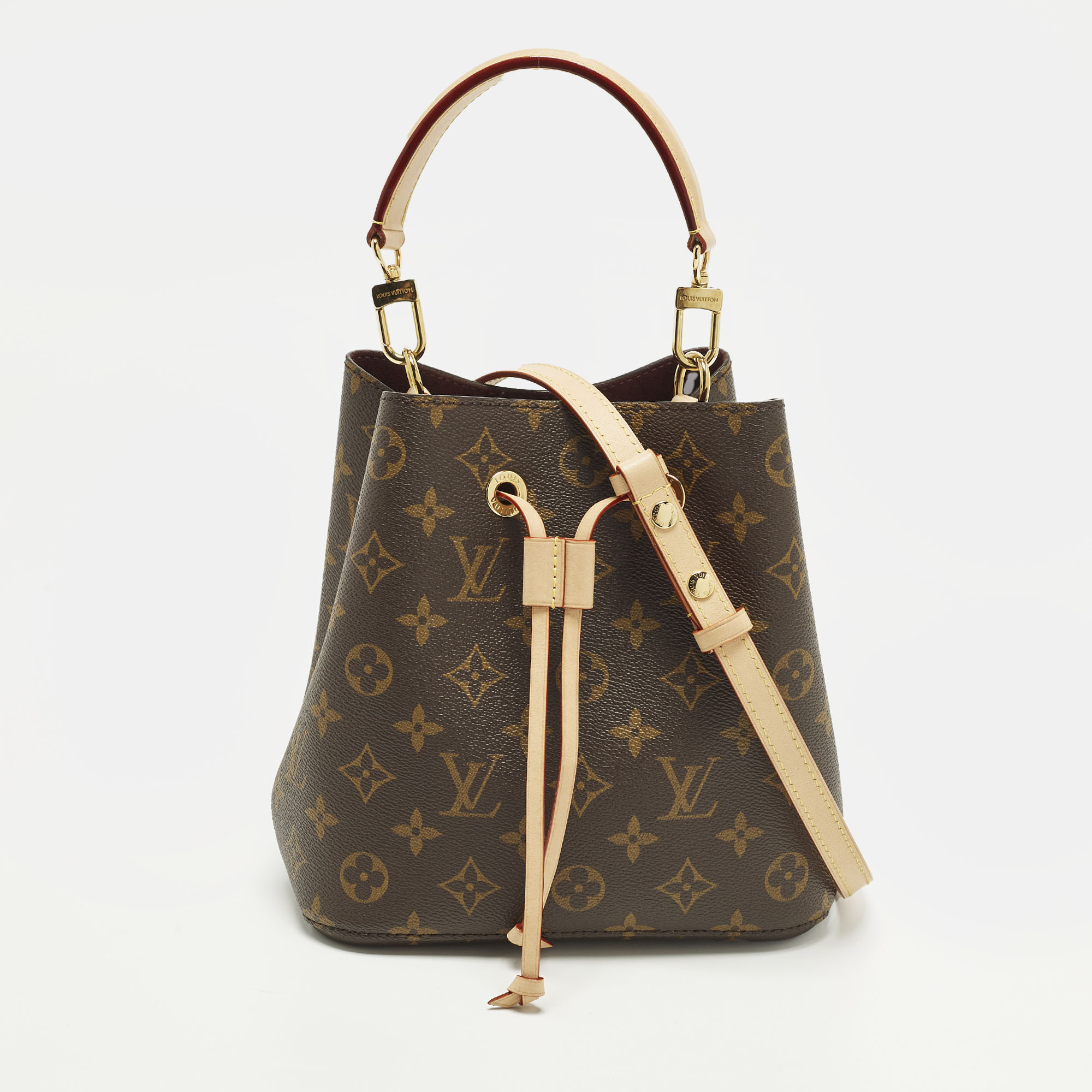 The Louis Vuitton NeoNoe BB bag features monogram canvas arranged in a compact bucket silhouette. The drawstring closure supports secure storage, while the rounded structure keeps the profile defined. Designed for everyday wear, it offers a practical yet visually distinctive addition to modern wardrobes.