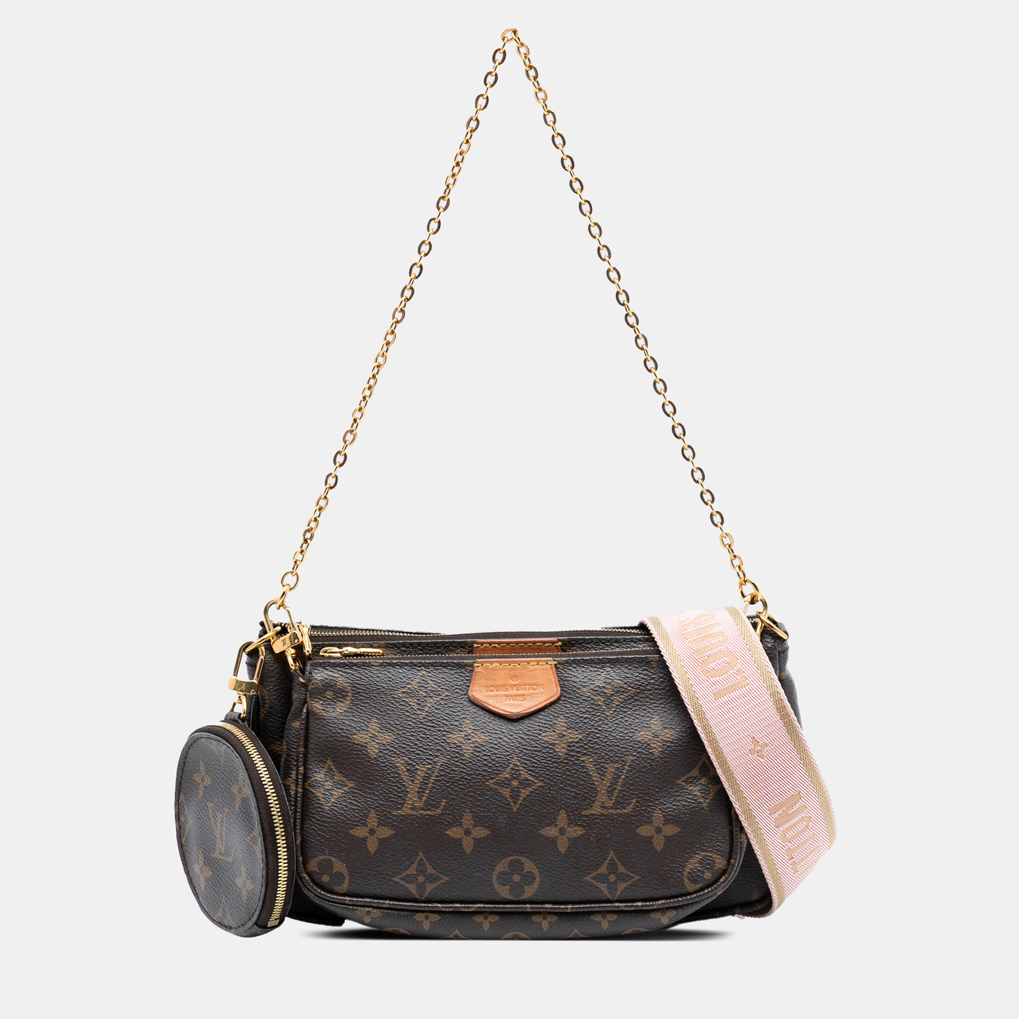 A modern Louis Vuitton icon, the Multi Pochette Accessoires blends versatility with the House’s signature Monogram elegance. Its modular design allows multiple ways to carry and style, offering both practicality and refined aesthetic in one cohesive piece.