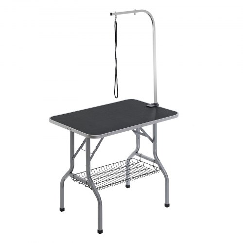 VEVOR Mesa Plegable de Aseo para Mascotas Mesa de 914,4x609,6 mm Mesa de Aseo para Perros Capacidad de Carga de 149,7 kg Mesa de Peluquería para Perros de Acero Inoxidable con 1 Pinza 2 Cuerdas 1 AsaMesa de Aseo para Mascotas DuraderaBrazo de Aseo Ajustable con AbrazaderaDetalles Bien PensadosInstalación Sencilla y RápidaAplicación AmpliaPráctico Estante de AlmacenamientoTamaño del producto: 38,78" x 24,21" x 65,43" / 985 x 615 x 1662 mm,Color del escritorio: Negro,Material principal: Acero Q235A,Peso del producto: 31,75 libras / 14,4 kg,Número de modelo: GT-210S,Altura del brazo: 31,3" / 795 mm,Tamaño del escritorio: 36" x 24" / 914,4 x 609,6 mm,Capacidad de carga estática: 330 libras / 149,7 kg,Altura del escritorio: 31,5" / 800 mm